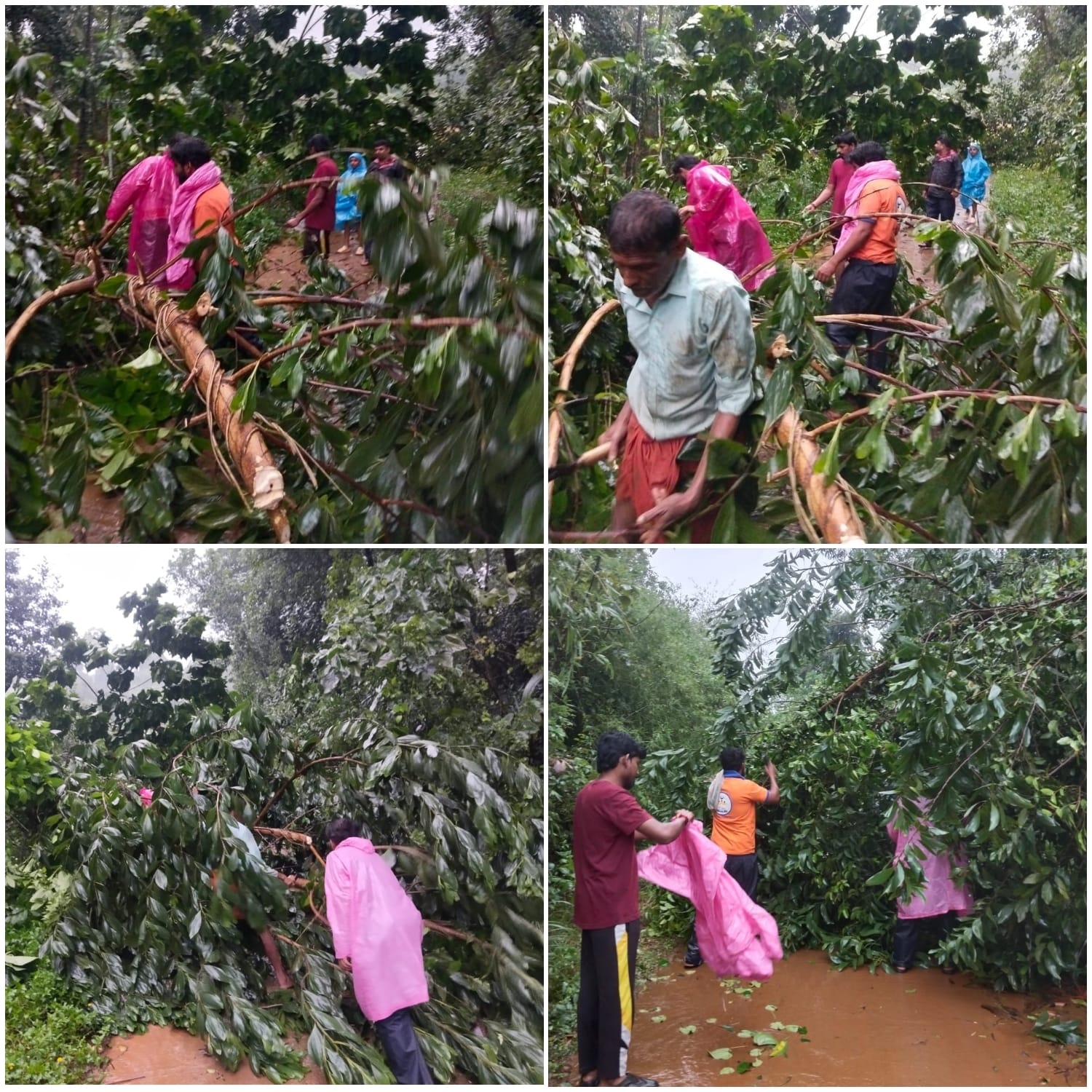 ವಿಚಾರ ತಿಳಿದು ಘಟನಾ ಸ್ಥಳಕ್ಕೆ ಧರ್ಮಸ್ಥಳ ಶೌರ್ಯ ಧನೂಪೂಜೆ ಘಟಕದ ಸದಸ್ಯರು ಆಗಮಿಸಿ ರಸ್ತೆಗೆ ಬಿದ್ದ ಮರವನ್ನು ಕಡಿದು ತೆರವುಗೊಳಿಸುವ ಕಾಯ೯ವನ್ನು ಶುಕ್ರವಾರ ಮಾಡಿದರು.