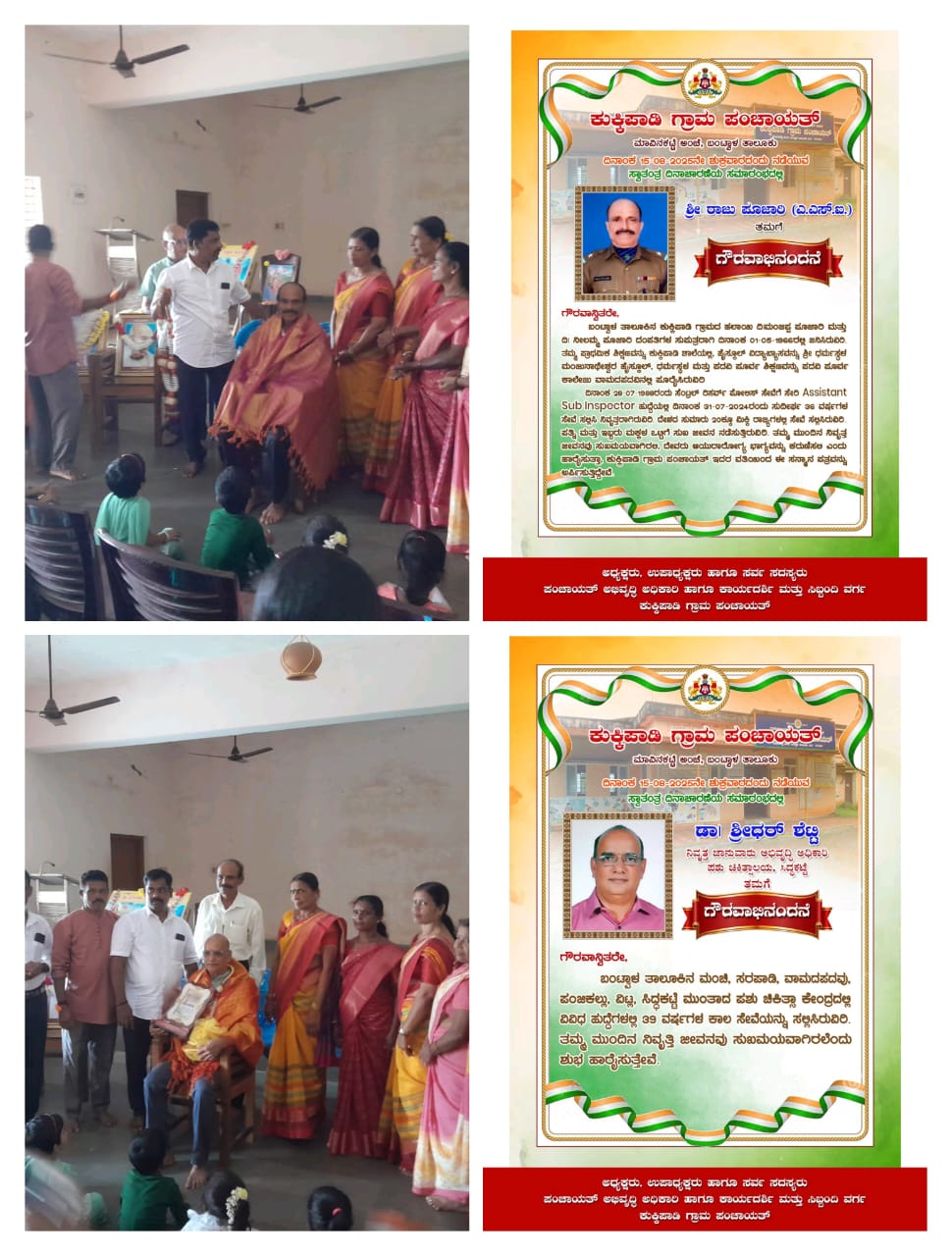 ಈ ಸಂದರ್ಭದಲ್ಲಿ ನಿವೃತ್ತ ಯೋಧರಾದ ರಾಜು ಪೂಜಾರಿ ಹಾಗೂ ನಿವೃತ್ತ ಪಶು ವೈಧ್ಯಾಧಿಕಾರಿ ಶ್ರೀಧರ ಶೆಟ್ಟಿ ಸಿದ್ದಕಟ್ಟೆ ಇವರನ್ನು ಅಭಿನಂದಿಸಲಾಯಿತು.