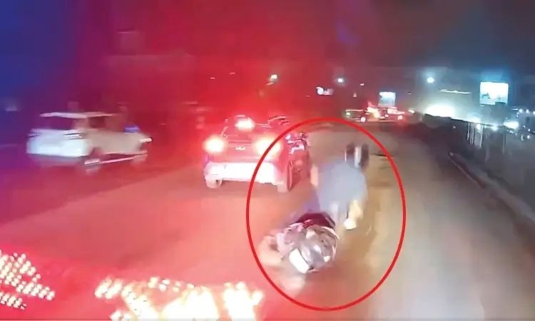 ನಗರದ ಕೆಪಿಟಿಯಿಂದ ನಂತೂರು ಕಡೆಗೆ ರಾಜಲಕ್ಷ್ಮಿ ಬಸ್ ಅನ್ನುವ ಬಸ್ ಸಂಚರಿಸುತ್ತಿದ್ದು ಅದನ್ನು ಶಶಿಧರ್ ಶೆಟ್ಟಿ ಎಂಬ ಚಾಲಕ ಚಲಾಯಿಸುತ್ತಿದ್ದರು. ಇದೇ ವೇಳೆ ವೇಗವಾಗಿ ಬಂದ ಸ್ಕೂಟಿಯೊಂದು ರಸ್ತೆಯಲ್ಲಿದ್ದ ದೊಡ್ಡ ಗುಂಡಿಗೆ ಡಿಕ್ಕಿ ಹೊಡೆದು ಸ್ಕಿಡ್ ಆಗಿ ಸವಾರ ರಸ್ತೆಗೆ ಬಿದ್ದಿದ್ದಾನೆ.