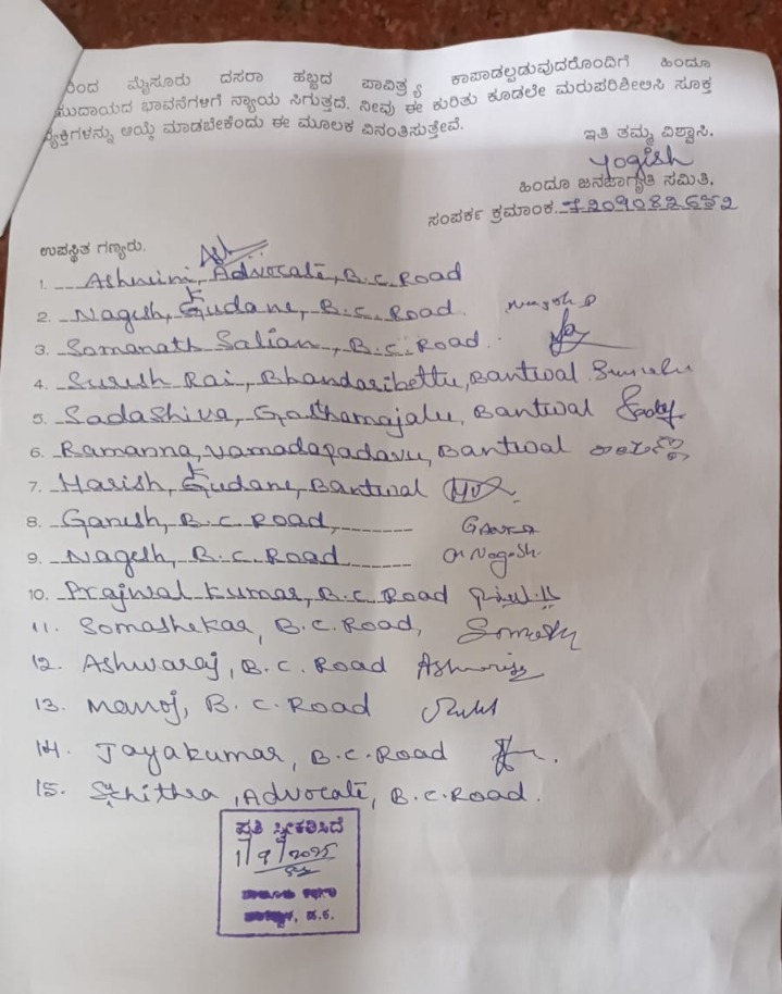 ಈ ನಿಟ್ಟಿನಲ್ಲಿ ಇಂದು ಮುಖ್ಯಮಂತ್ರಿಗಳಿಗೆ ಬಂಟ್ವಾಳದ ತಹಸೀಲ್ದಾರರ ಮೂಲಕ ಸಮಿತಿಯು ಮನವಿ ಪಾತ್ರವನ್ನು ಸಲ್ಲಿಸಿತು. ಮೈಸೂರು ದಸರಾ ಕೇವಲ ಒಂದು ಸಾಂಸ್ಕೃತಿಕ ಹಬ್ಬವಲ್ಲ, ಬದಲಾಗಿ ಕರ್ನಾಟಕದ ಅತ್ಯಂತ ದೊಡ್ಡ ಧಾರ್ಮಿಕ ಮತ್ತು ಪಾರಂಪರಿಕ ಹಬ್ಬ. ನವರಾತ್ರಿಯ ಸಂದರ್ಭದಲ್ಲಿ ದೇವಿಯ ಆರಾಧನೆ ನಡೆಯುತ್ತಿದ್ದು, 10ನೇ ದಿನ ದೇವಿ ಚಾಮುಂಡೇಶ್ವರಿ ಮಹಿಷಾಸುರನನ್ನು ಸಂಹಾರ ಮಾಡಿದ ವಿಜಯೋತ್ಸವವನ್ನು ಆಚರಿಸಲಾಗುತ್ತದೆ. ಇಂತಹ ಪವಿತ್ರ ಹಬ್ಬದ ಉದ್ಘಾಟನೆಗೆ ಆಹ್ವಾನಿಸಲ್ಪಡುವ ಮುಖ್ಯ ಅತಿಥಿಯು ದೇವಿಯ ಮೇಲೆ ಶ್ರದ್ಧೆ, ಮೂರ್ತಿ ಪೂಜೆಯ ಮೇಲೆ ಭಕ್ತಿ ಹಾಗೂ ನಾಡದೇವಿಯ ಮೇಲೆ ಗೌರವ ಹೊಂದಿರಬೇಕು.