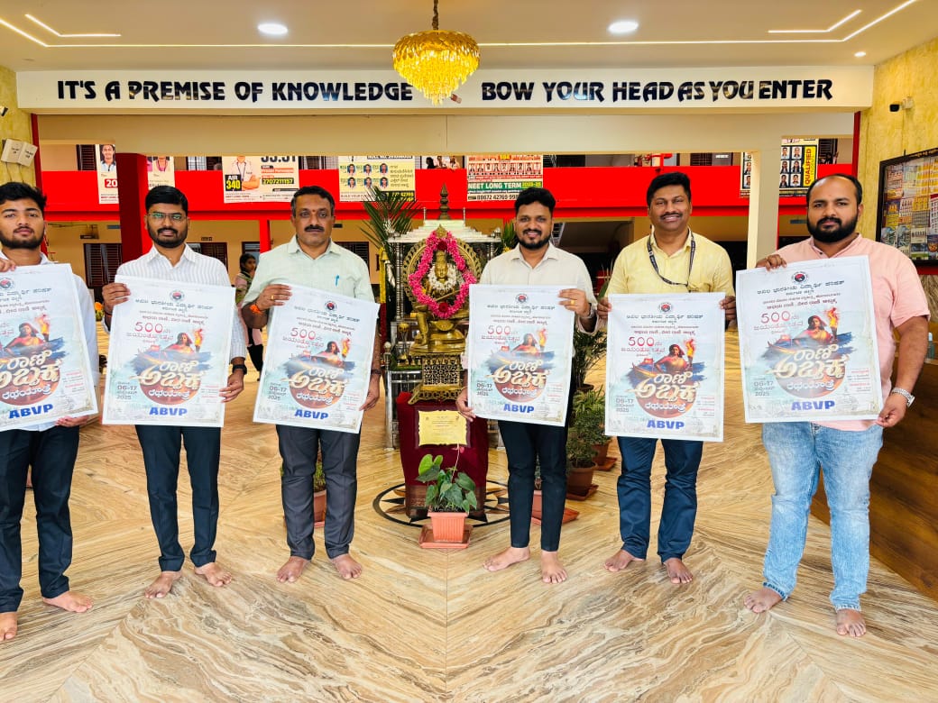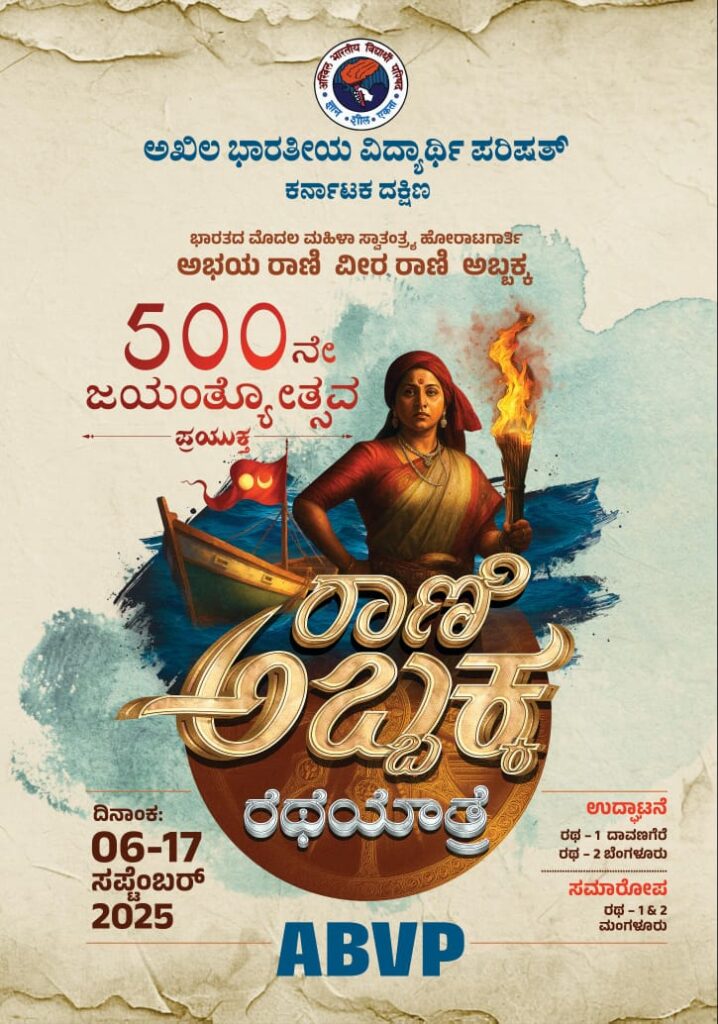 ಬೆಳ್ತಂಗಡಿ: ರಾಣಿ ಅಬ್ಬಕ್ಕ ರವರ 500ನೇ ಜಯಂತಿಯ ಪ್ರಯುಕ್ತ ಎಬಿವಿಪಿಯಿಂದ ಸೆ. 6 ರಿಂದ 16ರರ ವರೆಗೆ ನಡೆಯಲಿರುವ ರಾಣಿ ಅಬ್ಬಕ್ಕ ರಥಯಾತ್ರೆಯ ಪೋಸ್ಟರ್ ನ ಬಿಡುಗಡೆ ಕಾರ್ಯಕ್ರಮ ಬೆಳ್ತಂಗಡಿ ತಾಲೂಕಿನ ಗುರುವಾಯನಕೆರೆ ಎಕ್ಸಲ್ ಕಾಲೇಜಿನಲ್ಲಿ ಸೆ.3 ರಂದು ನಡೆಯಿತು.
