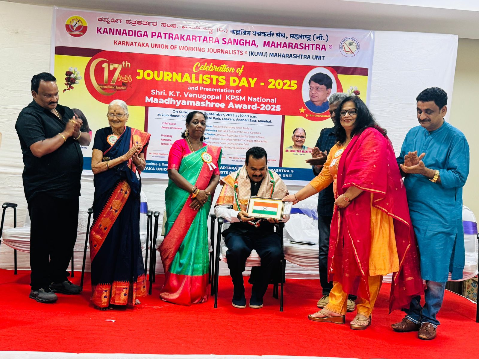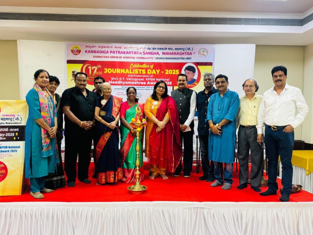 ಮುಂಬಯಿ: ಕನ್ನಡಿಗ ಪತ್ರಕರ್ತರ ಸಂಘ ಮಹಾರಾಷ್ಟ್ರ ಆಯೋಜಿಸಿದ್ದ ಸಂಘದ 2025ನೇ ವಾರ್ಷಿಕ ಶ್ರೀ ಕೆ.ಟಿ ವೇಣುಗೋಪಾಲ್ ಕಪಸಮ ರಾಷ್ಟ್ರೀಯ ಮಾಧ್ಯಮಶ್ರೀ ಪ್ರಶಸ್ತಿ ಪ್ರದಾನ ಕಾರ್ಯಕ್ರಮವು ಮುಂಬಯಿ ಅಂಧೇರಿಯ ಪೂರ್ವದ ಸಾಲೀಟರಿ ಕಾರ್ಪೋರೆಟ್ ಪಾರ್ಕ್ನ ಕ್ಲಬ್ ಹೌಸ್ ಸಭಾಗೃಹದಲ್ಲಿ ನಡೆಯಿತು.