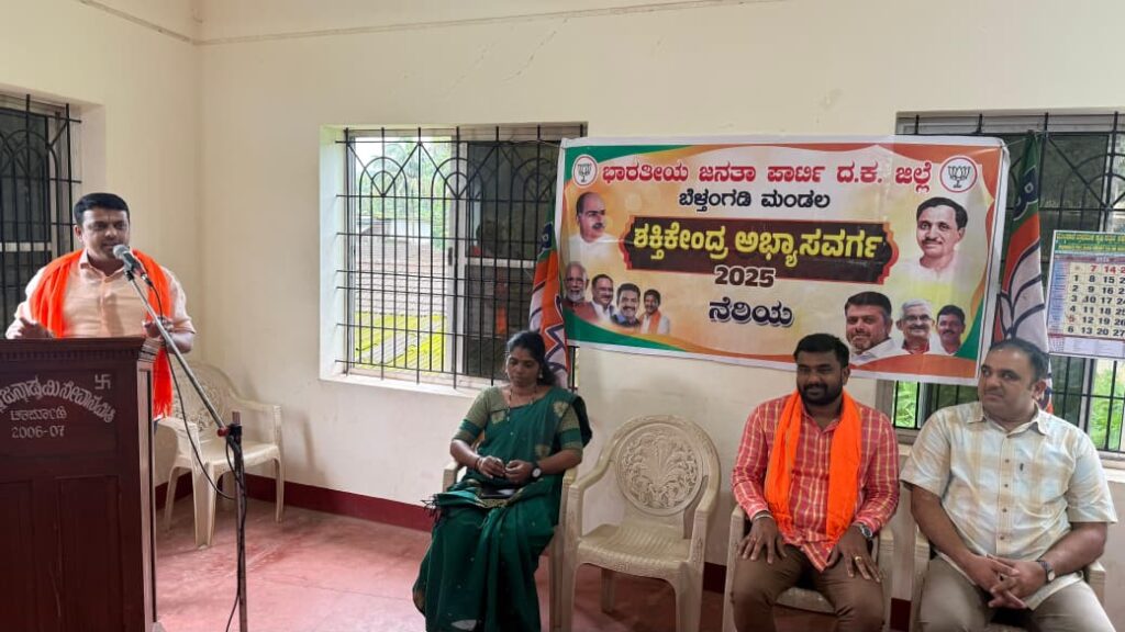 ಬೆಳ್ತಂಗಡಿ: ತಾಲೂಕಿನ ನೆರಿಯ ಗ್ರಾಮದಲ್ಲಿ ಭಾರತೀಯ ಜನತಾ ಪಾರ್ಟಿ ಬೆಳ್ತಂಗಡಿ ಮಂಡಲ ವತಿಯಿಂದ ಪಕ್ಷ ಸಂಘಟನಾ ದೃಷ್ಟಿಯಿಂದ ನೆರಿಯ ಶಕ್ತಿ ಕೇಂದ್ರ ಮಟ್ಟದ ಅಭ್ಯಾಸ ವರ್ಗ ಸಭೆ ಸೇವಾ ಸಹಕಾರಿ ಸಭಾ ಭವನದಲ್ಲಿ ಸೆ. 7 ರಂದು ನಡೆಯಿತು.