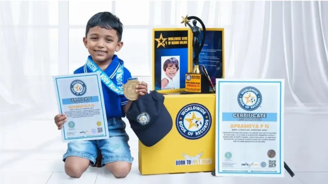 ಬಾಲಕ ಅಪ್ರಮೇಯ ಈ ಹಿಂದೆಯೇ ಇಂಡಿಯಾ ಬುಕ್ ಆಫ್ ರೆಕಾರ್ಡ್ಸ್ ಹಾಗೂ ಕರ್ನಾಟಕ ಅಚೀವರ್ಸ್ ಬುಕ್ ಆಫ್ ರೆಕಾರ್ಡ್ನಲ್ಲಿ ತನ್ನ ಹೆಸರನ್ನು ದಾಖಲಿಸಿಕೊಂಡಿದ್ದಾನೆ. ಪ್ರಸ್ತುತ ಬಪ್ಪಳಿಗೆಯ ಅಂಬಿಕಾ ವಿದ್ಯಾಲಯದಲ್ಲಿ ಎಲ್ಕೆಜಿ ವಿದ್ಯಾರ್ಥಿಯಾಗಿರುವ ಈತ ತನ್ನ ಪ್ರತಿಭೆಯಿಂದ ಎಲ್ಲರ ಮೆಚ್ಚುಗೆಗೆ ಪಾತ್ರನಾಗಿದ್ದಾನೆ.