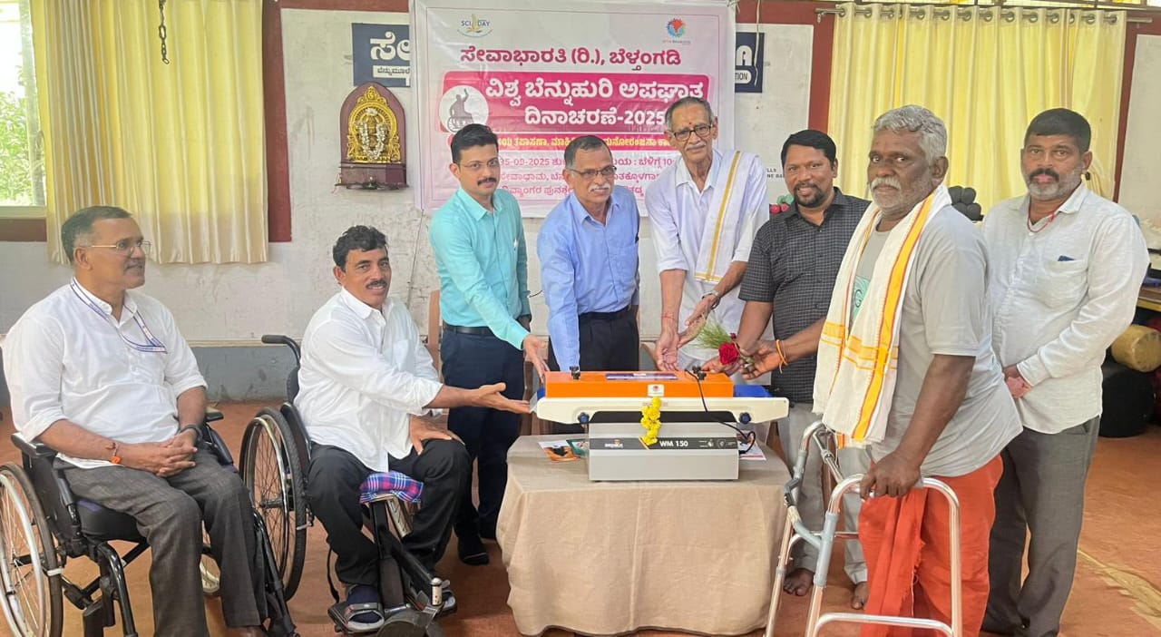 ಬೆಳ್ತಂಗಡಿ: ವಿಶ್ವ ಬೆನ್ನುಹುರಿ ಅಪಘಾತ ದಿನಾಚರಣೆಯ ಪ್ರಯುಕ್ತ ರಸ್ತೆ ಅಪಘಾತದಲ್ಲಿ ಬೆನ್ನುಹುರಿ ಆಘಾತಕ್ಕೆ ಒಳಗಾಗಿ ಮೂರು ವರ್ಷ ಹಾಸಿಗೆಯಲ್ಲಿದ್ದ ಬಂಟ್ವಾಳದ ವ್ಯಕ್ತಿಗೆ ಬೆಳ್ತಂಗಡಿ ತಾಲೂಕಿನ ದಿವ್ಯಾಂಗರ ಪುನಶ್ಚೇತನ ಕೇಂದ್ರ ಸೌತಡ್ಕ ಸಂಸ್ಥೆಯ ಪರವಾಗಿ ಹತ್ತಿಯಿಂದ ಬತ್ತಿ ಮಾಡುವ ಯಂತ್ರವನ್ನು ಸೆ.10 ರಂದು ಹಸ್ತಾಂತರ ಮಾಡಲಾಯಿತು.