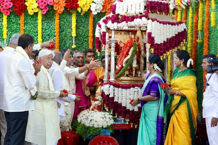 ಇಂದು ಬೆಳಗ್ಗೆ 9:15 ರಿಂದ 9:45 ರ ನಡುವಿನ ವೃಶ್ಚಿಕ ಲಗ್ನದಲ್ಲಿ ಖ್ಯಾತ ಸಾಹಿತಿ ಮತ್ತು ವಿದ್ವಾಂಸ ಹಂಪ ನಾಗರಾಜಯ್ಯ ಅವರು ಚಾಮುಂಡಿ ಬೆಟ್ಟದ ಮೇಲಿರುವ ಚಾಮುಂಡೇಶ್ವರಿ ದೇವಿಗೆ ಪುಷ್ಪ ನಮನ ಸಲ್ಲಿಸುವ ಮೂಲಕ ದಸರಾ ಉತ್ಸವವನ್ನು ಉದ್ಘಾಟಿಸಿದರು.