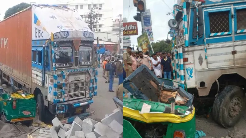 ಬೆಂಗಳೂರು: ಟ್ರಕ್, ಕಾರು ಹಾಗೂ ಆಟೋ ನಡುವೆ ಭೀಕರ ಅಪಘಾತ ಸಂಭವಿಸಿ ಡಿಕ್ಕಿಯ ರಭಸಕ್ಕೆ ಆಟೋ ಎರಡು ತುಂಡಾದ ಘಟನೆ ಬೆಂಗಳೂರಿನ ಸುಮ್ಮನಹಳ್ಳಿ ಜಂಕ್ಷನ್ ನಡೆದಿದೆ.