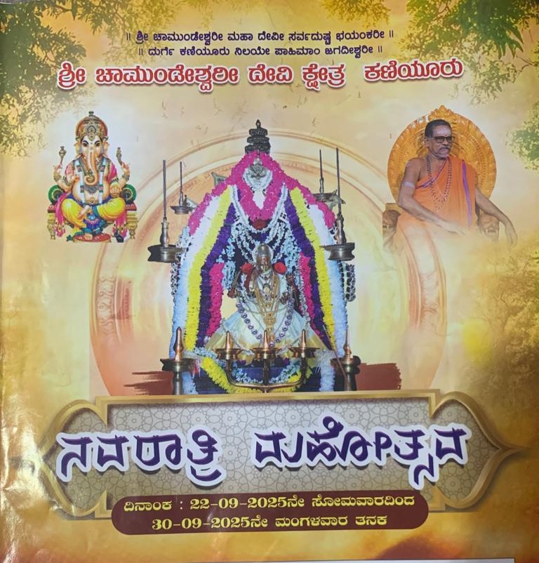 ಕಣಿಯೂರು: ಶ್ರೀ ಚಾಮುಂಡೇಶ್ವರೀ ದೇವಿ ಕ್ಷೇತ್ರ ಕಣಿಯೂರಿನಲ್ಲಿ ಸೆ.22 ರಿಂದ 30ರ ತನಕ ನವರಾತ್ರಿ ಮಹೋತ್ಸವ ನಡೆಯಲಿದೆ.