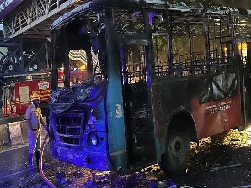 ಬೆಂಗಳೂರು : ನಗರದ ಹೆಚ್ಎಎಲ್ ಮುಖ್ಯದ್ವಾರದ ಬಳಿ ಚಲಿಸುತ್ತಿದ್ದ ಬಿಎಂಟಿಸಿ ಬಸ್ನಲ್ಲಿ ಏಕಾಏಕಿ ಬೆಂಕಿ ಕಾಣಿಸಿಕೊಂಡು ಬಸ್ ಸುಟ್ಟು ಕರಕಲಾಗಿರುವ ಘಟನೆ ಬೆಳಗ್ಗಿನ ಜಾವ 5:10 ಕ್ಕೆ ನಡೆದಿದೆ.