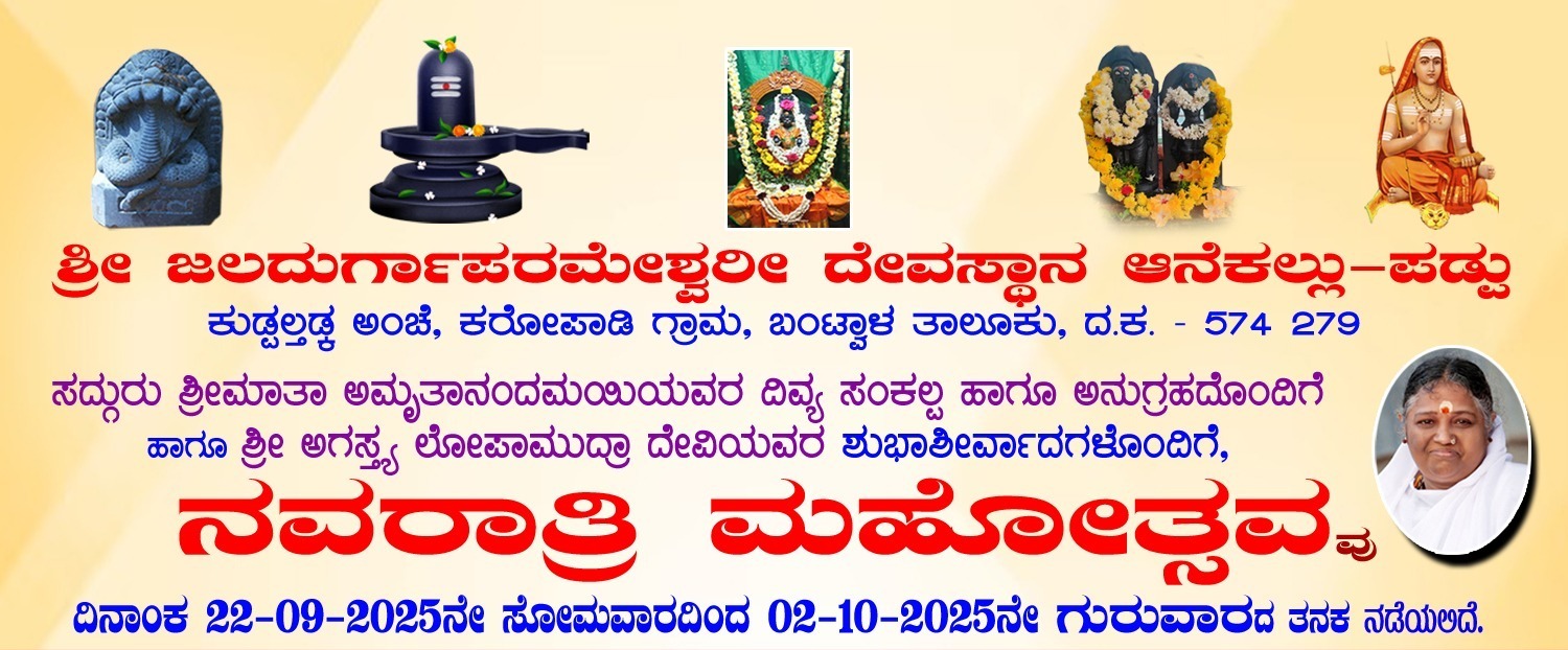 ಬಂಟ್ವಾಳ: ಕರೋಪಾಡಿ ಗ್ರಾಮದ ಶ್ರೀ ಜಲದುರ್ಗಾಪರಮೇಶ್ವರೀ ದೇವಸ್ಥಾನ ಆನೆಕಲ್ಲು-ಪಡ್ಡು ಇಲ್ಲಿ ಸೆ. 22ರಿಂದ ಅ.02ರ ತನಕ ನವರಾತ್ರಿ ಮಹೋತ್ಸವ ನಡೆಯಲಿದೆ.