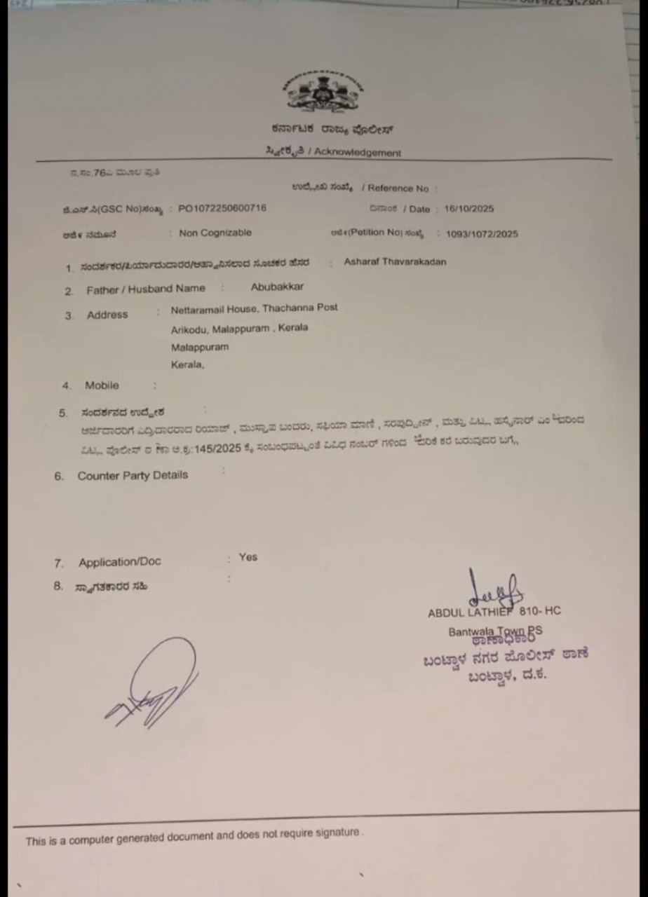 ಸೇಫಿಯಾ ಮಾಣಿ ಎಂಬ ಆರೋಪಿ ಈ ರೀತಿ ಕರೆ ಮಾಡಿ ಕೇಸ್ ವಾಪಸು ಪಡೆಯದಿದ್ದರೆ ವೀಡಿಯೋ, ಫೋಟೋ ಅವರ ಜಮಾತಿಗೆ ಅವರ ಪತ್ನಿ ಸಂಬಂಧಿಕರಿಗೆ ನೀಡುತ್ತೇನೆ, ಬಳಿಕ ನನ್ನ ಸಹೋದರನಿಗೆ ಕರೆ ಮಾಡಿ ಕಳಿಸಿದ್ದಾರೆ. ಅದಕ್ಕೆ ಸಂಬಂಧಿಸಿದಂತೆ ನನ್ನ ಸಹೋದರ ಕೇರಳದಲ್ಲಿ ದೂರು ನೀಡಿದ್ದಾರೆ. ನನಗೆ ಈ ಮೇಲಿನ ನಂಬರ್ ನಿಂದ ಬೆದರಿಕೆ ಕರೆ ಬರುತ್ತಿದ್ದು, ಅವರ ಮೇಲೆ ಕಾನೂನು ಕ್ರಮ ಕೈಗೊಳ್ಳಬೇಕಾಗಿ ಮತ್ತು ರಕ್ಷಣೆ ನೀಡಬೇಕು ಎಂದು ನೀಡಿರುವ ದೂರಿನಲ್ಲಿ ತಿಳಿಸಿದ್ದಾರೆ.