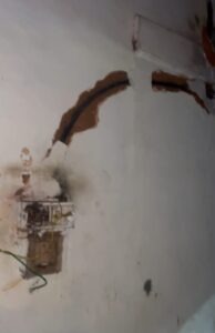 ಅ.18 ರಂದು ಸಿಡಿಲು ಗುಡುಗಿನ ಜೊತೆಗೆ ಮಳೆಯ ಅಬ್ಬರ ಜೋರಾಗಿದ್ದು ಮನೆಯ ವಿದ್ಯುತ್ ಲೈನ್ಗಳು ಸುಟ್ಟು ಹೋಗಿದ್ದು, ಗೋಡೆ ಬಿರುಕು ಬಿಟ್ಟಿದೆ. ಮನೆಯೊಳಗಿನ ಕೋಣೆಯೊಂದರಲ್ಲಿ ಓದುತ್ತಿದ್ದ ಲಾವಣ್ಯ ಹಾಗೂ ಸೌಜನ್ಯ ಅವರಿಗೆ ತಲೆಯ ಭಾಗಕ್ಕೆ ಸಿಡಿಲೇಟು ಬಿದ್ದಿದ್ದು , ಅಜ್ಜಿ ಬೇಬಿ ಅವರಿಗೆ ಕೈ ಭಾಗಕ್ಕೆ ಸಣ್ಣ ಗಾಯವಾಗಿದೆ ಎಂದು ತಿಳಿದುಬಂದಿದೆ.