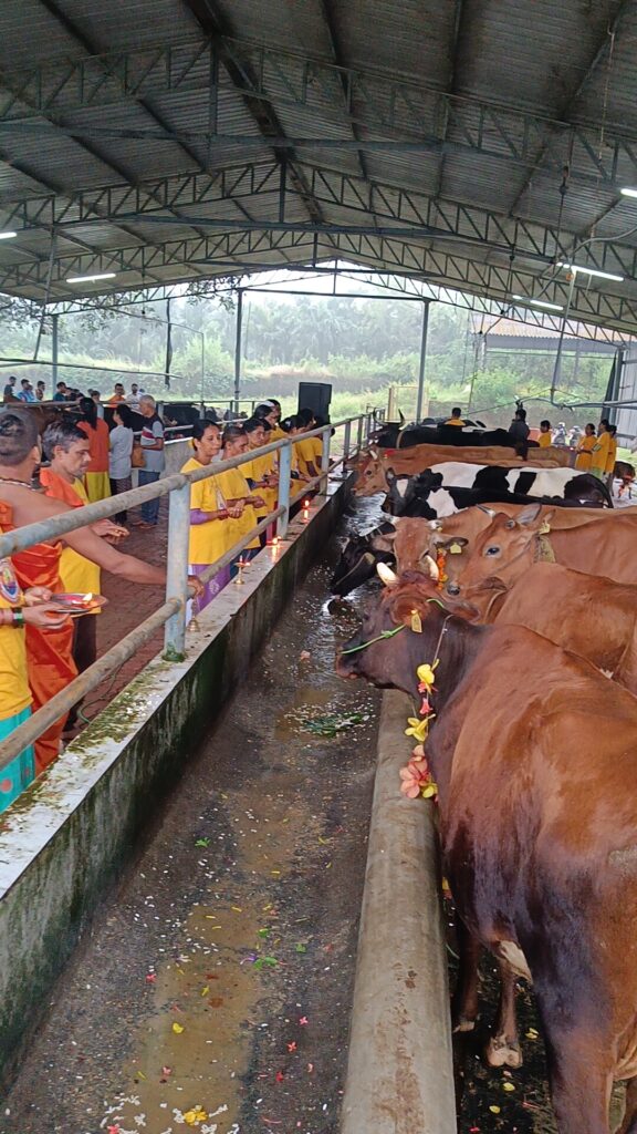 ಪುರೋಹಿತರಾದ ದೀಪಕ್ ಶರ್ಮರವರ ನೇತೃತ್ವದಲ್ಲಿ ಲಕ್ಶ್ಮೀ ಪೂಜೆ, ಕಲಶ ಪೂಜೆ ಬಳಿಕ ಗೋವುಗಳ ಪೂಜೆಯನ್ನು ಬಾಲಕೃಷ್ಣ ಮತ್ತು ಪದ್ಮಾವತಿ ದಂಪತಿಗಳ ಸಹಕಾರದಿಂದ ನೆರವೇರಿಸಿದರು. ವಿಶ್ವಕರ್ಮ ಸೀತಾರಾಮ ಆಚಾರ್ಯರವರು ಕರ್ಣವೇದನ ಮತ್ತು ಮೂಗುತಿ ಧಾರಣೆ ನಡೆಸಿಕೊಟ್ಟರು ಮತ್ತು ಅಗ್ನಿಹೋತ್ರ ಕೃಷ್ಣಪ್ಪ ಆರಂಬೊಡಿ ದಂಪತಿಗಳು ನೆರವೇರಿಸಿದರು.