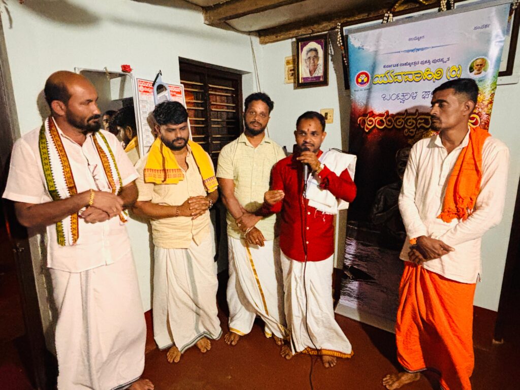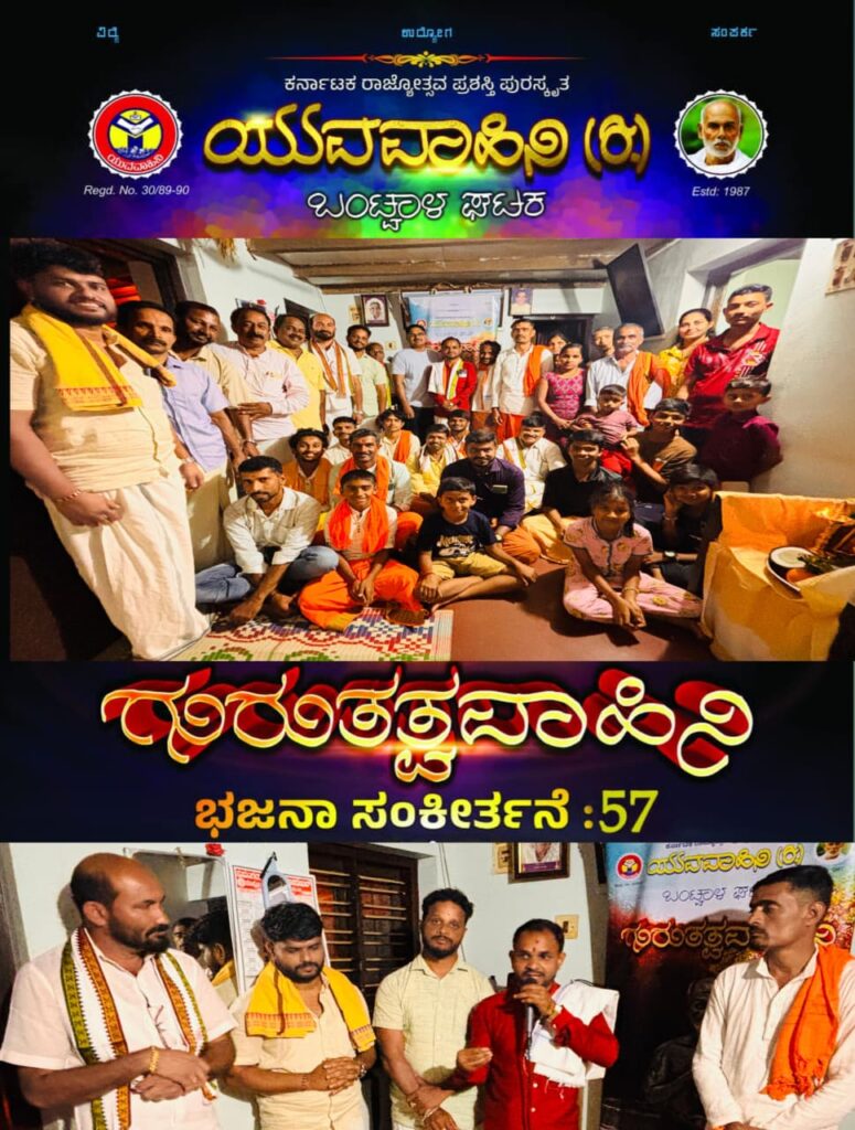 ಅವರು ಅ. 23 ಗುರುವಾರ ಬಂಟ್ವಾಳ ತಾಲೂಕಿನ ನರಿಕೊಂಬು ಗ್ರಾಮ ಪಂಚಾಯತ್ ಅಧ್ಯಕ್ಷ ಸಂತೋಷ್ ಕುಮಾರ್ ಇವರ ಶಂಬೂರು ಅಡ್ಡದಪಾದೆಯ ಮನೆಯಲ್ಲಿ ಯುವವಾಹಿನಿ ಬಂಟ್ವಾಳ ಘಟಕದ ಆಶ್ರಯದಲ್ಲಿ ನಡೆದ ಗುರುತತ್ವವಾಹಿನಿ ಭಜನಾ ಸಂಕೀರ್ತನೆ ಮಾಲಿಕೆ 57 ರಲ್ಲಿ ಗುರುಸಂದೇಶ ನೀಡಿದರು