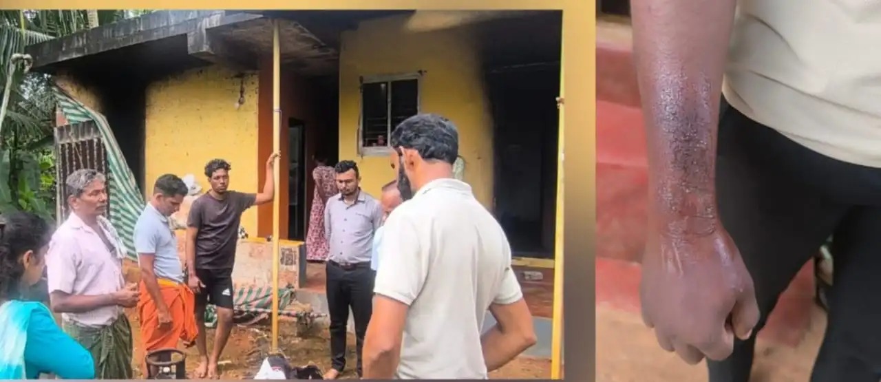 ಯುವಕ ಜಯರಾಜ್ ಸಮಯಪ್ರಜ್ಞೆ ಮೆರೆದಿದ್ದು ಮನೆಮಂದಿ ಸುರಕ್ಷಿತವಾಗಿ ಪ್ರಾಣಾಪಾಯದಿಂದ ಪಾರಾಗಿದ್ದಾರೆ.