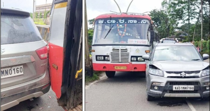 ಧರ್ಮಸ್ಥಳದಿಂದ ಬರುತ್ತಿದ್ದ ಕಾಸರಗೋಡು ಬಸ್ ಹಾಗೂ ಅದೇ ದಿಕ್ಕಿನಲ್ಲಿ ಬರುತ್ತಿದ್ದ ಬೆಂಗಳೂರು ಮೂಲದ ಕಾರಿನ ನಡುವೆ ಅಪಘಾತ ಸಂಭವಿಸಿದ್ದು, ಕಾರು ಚಾಲಕ ಬ್ರೇಕ್ ಹಾಕಿದ ವೇಳೆ ಹಿಂದೆಯಿಂದ ಬರುತ್ತಿದ್ದ ಬಸ್ ಕಾರಿನ ಹಿಂಭಾಗಕ್ಕೆ ಡಿಕ್ಕಿ ಹೊಡೆದಿದೆ ಎಂದು ತಿಳಿದು ಬಂದಿದೆ.