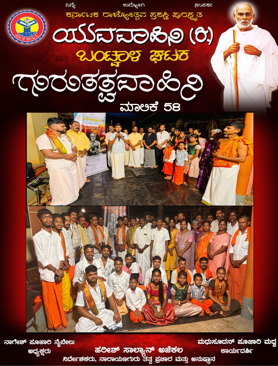 ಅವರು ಯುವವಾಹಿನಿ ಬಂಟ್ವಾಳ ಘಟಕದ ಆಶ್ರಯದಲ್ಲಿ ರಾಜೇಶ್ ಅಮ್ಟೂರ್ ಇವರ ಮನೆಯಲ್ಲಿ ಅ.02ರಂದು ನಡೆದ ಗುರುತತ್ವವಾಹಿನಿ 58ನೇ ಮಾಲಿಕೆ ಹಾಗೂ ತುಳಸಿ ಪೂಜಾ ಕಾರ್ಯಕ್ರಮದಲ್ಲಿ ಗುರುಸಂದೇಶ ನೀಡಿದರು.