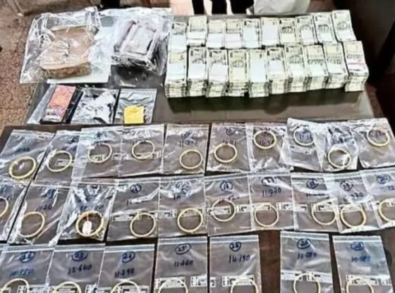 ಭಟ್ಕಳ: ಖಾಸಗಿ ಬಸ್ವೊಂದರಲ್ಲಿ ಸ್ವೀಟ್ ಬಾಕ್ಸ್ ಮಾದರಿಯಲ್ಲಿ ಸಾಗಾಟ ಮಾಡಲಾಗುತ್ತಿದ್ದ 32 ಚಿನ್ನದ ಬಳೆ, 50 ಲಕ್ಷ ರೂಪಾಯಿ ನಗದನ್ನು ಭಟ್ಕಳ ಪೊಲೀಸರು ವಶಕ್ಕೆ ಪಡೆದುಕೊಂಡಿದ್ದಾರೆ.