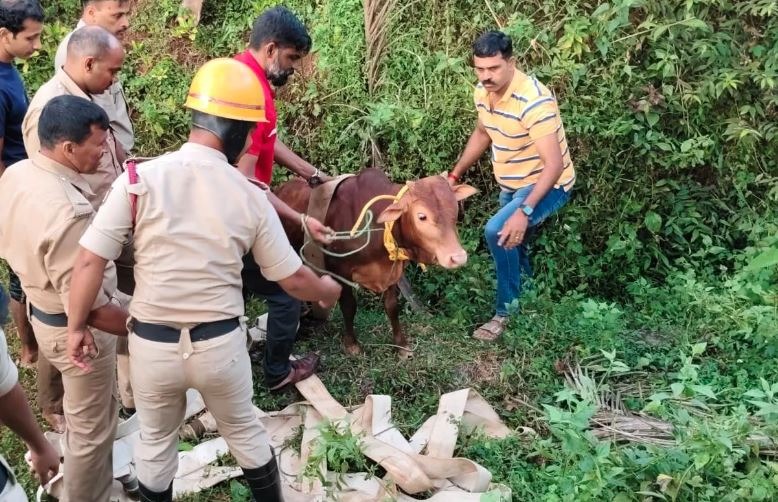 ಸೋಣಂಗೇರಿಯ ಯೋಗಿಶ್ ಎಂಬವರ ಕರು ಬಸ್ಸು ತಂಗುದಾಣದ ಬಳಿ ಇರುವ 15 ಅಡಿ ಆಳದ ಬಾವಿಗೆ ಬಿದ್ದಿತ್ತು. ಬಳಿಕ ಕರುವನ್ನು ಅಗ್ನಿಶಾಮಕ ದಳ ಮತ್ತು ಊರವರು ಸೇರಿ ಸುರಕ್ಷಿತವಾಗಿ ಮೇಲಕೆತ್ತಿ ರಕ್ಷಣೆ ಮಾಡಿದ್ದಾರೆ.