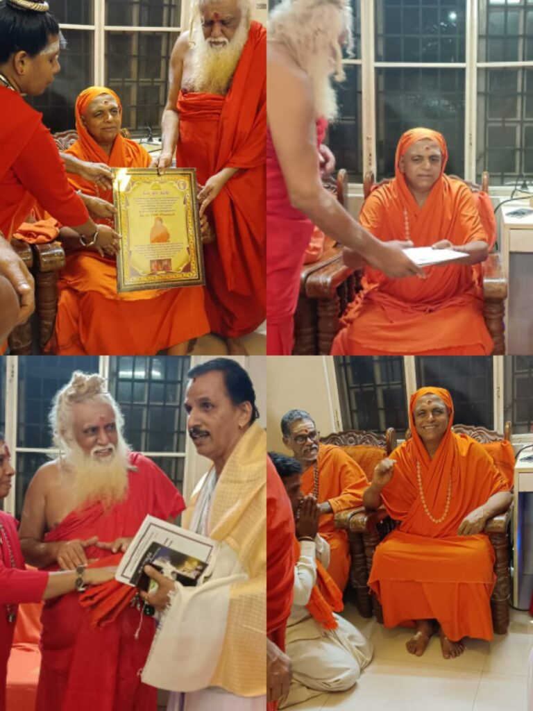 ಮಂಗಳೂರು: ಬೆಂಗಳೂರು ಕೈಲಾಸ ಮಹಾ ಸಂಸ್ಥಾನದ ಪೀಠಾಧೀಶ್ವರರಾದ ಶ್ರೀ ಶ್ರೀ ಶ್ರೀ ಜಯೇಂದ್ರ ಪುರಿ ಮಹಾ ಸ್ವಾಮೀಜಿಯವರಿಗೆ ಮಂಗಳೂರು ಓಂ ಶ್ರೀಮಠದ ಗುರುಗಳಾದ ಅಖಂಡ ಭಾರತ ಸನಾತನ ಸಂತಸಮಿತಿ ರಾಷ್ಟ್ರ ಅಧ್ಯಕ್ಷ ಮಹಾಮಂಡಲೇಶ್ವರ ಸ್ವಾಮಿ ಓಂ ಶ್ರೀ ವಿದ್ಯಾನಂದ ಸರಸ್ವತಿ ಹಾಗೂ ಸಹ ಅಧ್ಯಕ್ಷ ಓಂ ಶ್ರೀ ಮಠದ ಮಠಾಧಿಪತಿ ಮಾತಾಶ್ರೀ ಓಂ ಶ್ರೀ ಶಿವಜ್ಞಾನಮಯೀ ಸರಸ್ವತಿಯವರು ಸ್ವಾಗತಿಸಿ ಗೌರವಾರ್ಪಣೆ ನೀಡಿದರು.