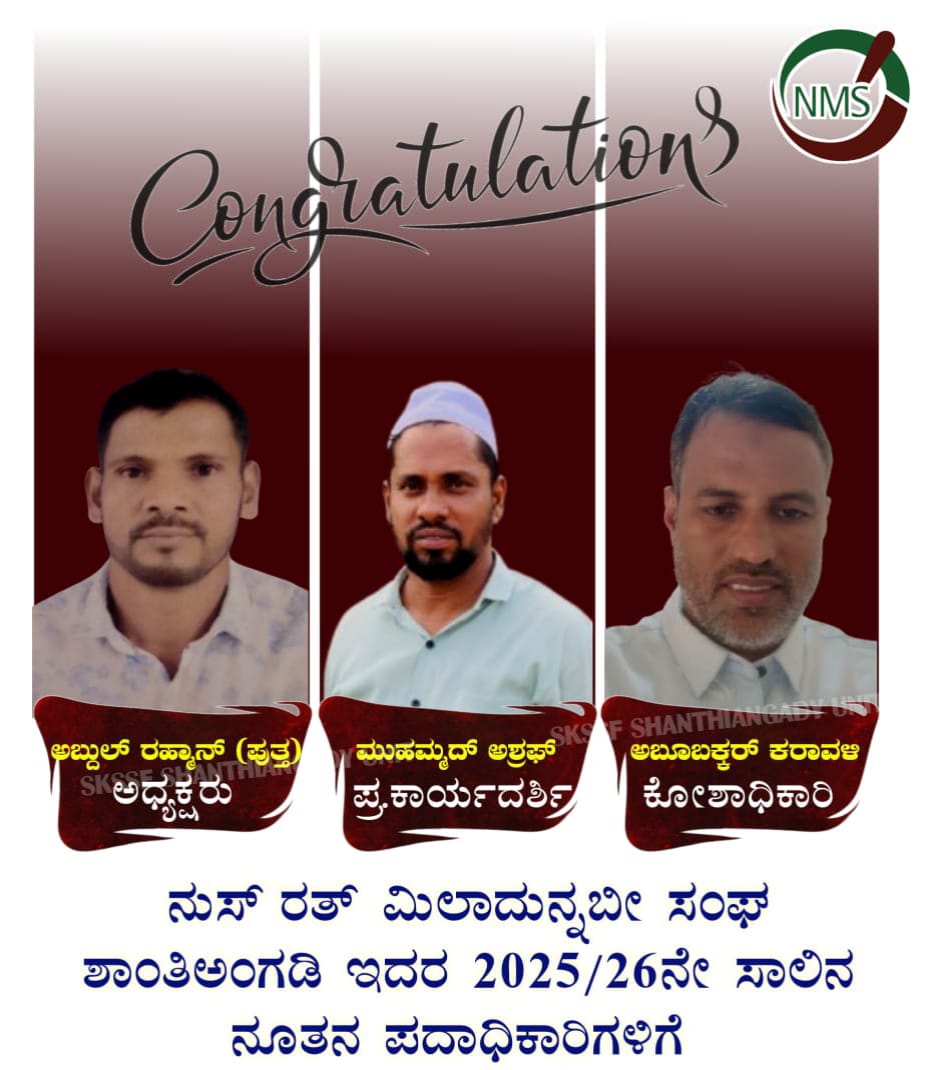 ಬಂಟ್ವಾಳ : ಬಿ. ಸಿ. ರೋಡಿನ ಶಾಂತಿ ಅಂಗಡಿಯ ನುಸ್ ರತ್ ಮಿಲಾದುನ್ನಭಿ ಸಂಘ (ರಿ) ಇದರ ವಾರ್ಷಿಕ ಮಹಾಸಭೆಯು ಮುಹಿಯುದ್ದೀನ್ ಜುಮಾ ಮಸೀದಿ ಮಿತ್ತ ಬೈಲ್ ಇದರ ಮುದರ್ರಿಸರಾದ ಬಹು ಉಮರುಲ್ ಫಾರೂಕ್ ಫೈಝಿ ಅವರ ಅಧ್ಯಕ್ಷತೆಯಲ್ಲಿ ನಡೆಯಿತು.