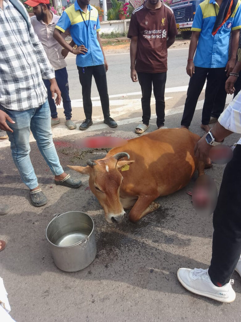 ಹಸುವನ್ನು ಕಂಡ ಸ್ಥಳೀಯರು ಕೂಡಲೇ ಪ್ರಾಥಮಿಕ ಆರೈಕೆ ಮಾಡಿ, ನಂತರ ಪಶು ಆರೋಗ್ಯ ಕೇಂದ್ರದ ಅಧಿಕಾರಿ ಯವರಿಗೆ ತಿಳಿಸಿದ್ದು, ಸ್ಥಳಕ್ಕೆ ಬಂದ ಪಶು ವೈದ್ಯರು ಚಿಕಿತ್ಸೆ ನೀಡಿದ್ದಾರೆ.