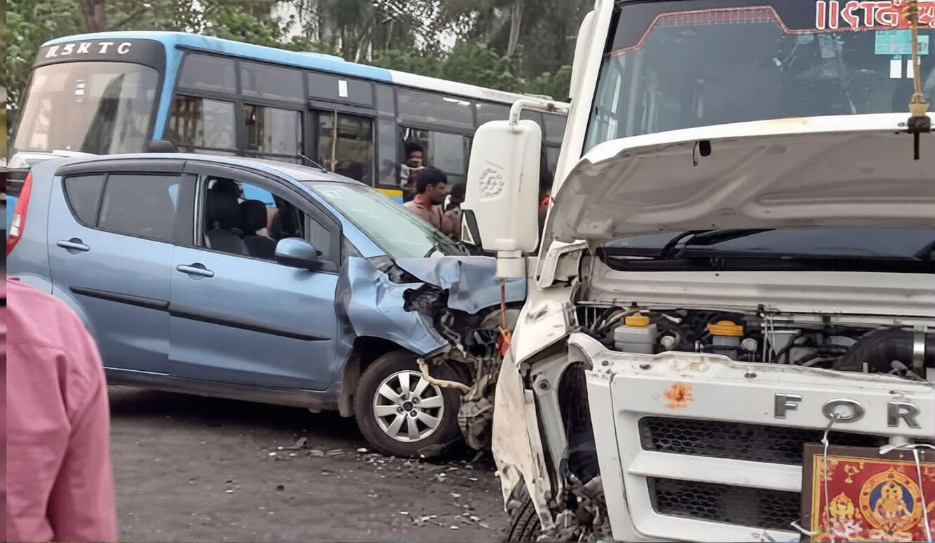 ಪರ್ಕಳದ ಕೆನರಾ ಬ್ಯಾಂಕ್ ಸಮೀಪದ ತಿರುವಿನಲ್ಲಿ ಈ ಅಪಘಾತ ಸಂಭವಿಸಿದೆ.