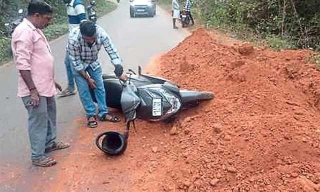 ಕಾಮಗಾರಿಗಾಗಿ ತೆಗೆದ ಮಣ್ಣನ್ನು ರಸ್ತೆಯ ಅರ್ಧ ಭಾಗದವರೆಗೆ ಹಾಕಲಾಗಿತ್ತು. ಬೈಕ್ ಸವಾರರು ಈ ಮಣ್ಣಿನ ಮೇಲೆ ಸಂಚರಿಸುವಾಗ ವಾಹನ ನಿಯಂತ್ರಣ ತಪ್ಪಿ ಈ ಅಪಘಾತ ಸಂಭವಿಸಿದೆ ಎಂದು ಸ್ಥಳೀಯರು ಮಾಹಿತಿ ನೀಡಿದ್ದಾರೆ.