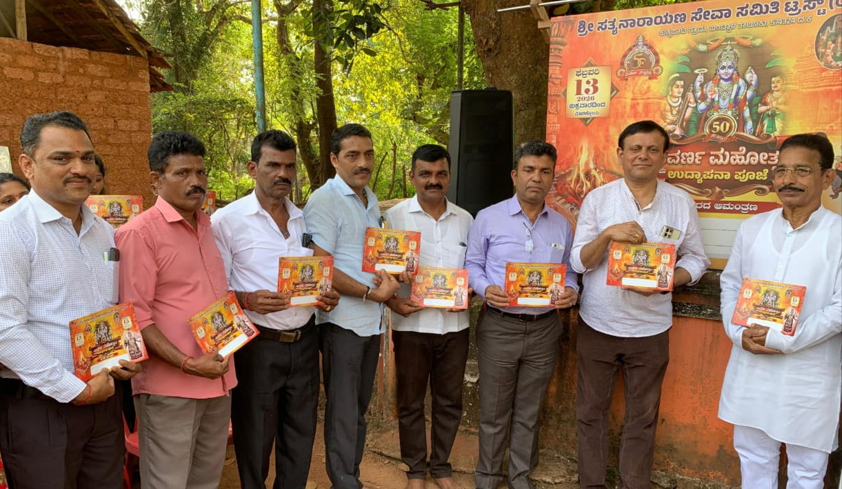 ಬಂಟ್ವಾಳ: ತಾಲೂಕಿನ ಕುಕ್ಕಿಪಾಡಿ ಗ್ರಾಮದ ಶ್ರೀ ಸತ್ಯನಾರಾಯಣ ಸೇವಾ ಸಮಿತಿ ಟ್ರಸ್ಟ್ ರಿ. ಎಲ್ಪೇಲು ಇಲ್ಲಿ ಫೆ. 13 ರಿಂದ ಫೆ. 15 ವರೆಗೆ 50ನೇ ವರ್ಷದ ಸುವರ್ಣ ಮಹೋತ್ಸವ ಹಾಗೂ ಉದ್ಯಾಪನಾ ಪೂಜೆ ನಡೆಯಲಿದ್ದು ಇದರ ಆಮಂತ್ರಣ ಪತ್ರಿಕೆಯು ಜ.04 ರಂದು ಬಿಡುಗಡೆಗೊಂಡಿದೆ.ಹಲವು ಗಣ್ಯರ ಹಾಗೂ ಊರವರ ಸಮ್ಮುಖದಲ್ಲಿ ಆಮಂತ್ರಣ ಪತ್ರಿಕೆ ಬಿಡುಗಡೆಗೊಳಿಸಲಾಯಿತು.