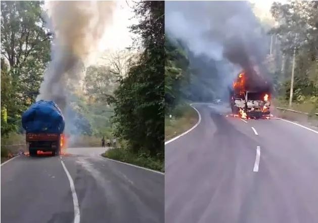 ಸುಳ್ಯ: ಕಾಫಿ ಹೊಟ್ಟು ಸಾಗಿಸುತ್ತಿದ್ದ ಲಾರಿಯೊಂದು ಬೆಂಕಿಗೆ ಆಹುತಿಯಾದ ಘಟನೆ ಸುಳ್ಯದ ಮಡಿಕೇರಿ – ಮಂಗಳೂರು ನಡುವಿನ ದೇವರಕೊಲ್ಲಿ ಬಳಿ ಜ.9 ರಂದು ಮುಂಜಾನೆ ನಡೆದಿದೆ.