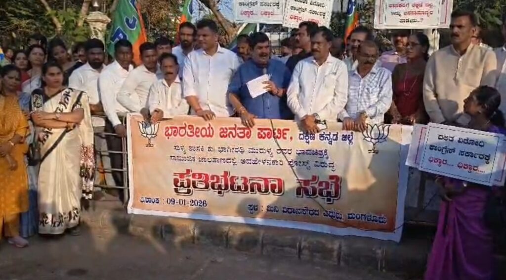 ಮಂಗಳೂರು : ಸುಳ್ಯ ವಿಧಾನಸಭಾ ಕ್ಷೇತ್ರದ ಶಾಸಕಿ ಭಾಗೀರಥಿ ಮುರುಳ್ಯ ಅವರ ಬಗ್ಗೆ ಸಾಮಾಜಿಕ ಜಾಲತಾಣಗಳಲ್ಲಿ ಅವಹೇಳನ ಕಾರಿ ಪೋಸ್ಟ್ ಮಾಡಿರುವುದನ್ನು ಖಂಡಿಸಿ, ದ.ಕ.ಜಿಲ್ಲಾ ಬಿಜೆಪಿ ವತಿಯಿಂದ ಮಂಗಳೂರು ನಗರದ ಮಿನಿ ವಿಧಾನಸೌಧದ ಮುಂದೆ ಜ.9 ರಂದು ಪ್ರತಿಭಟನೆ ನಡೆಯಿತು.