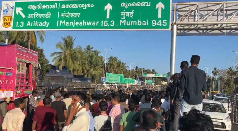 ಮಂಗಳೂರು: ಮಂಗಳೂರು–ಕಾಸರಗೋಡು ಗಡಿ ಭಾಗದಲ್ಲಿರುವ ಕುಂಬಳೆಯ ಆರಿಕ್ಕಾಡಿಯಲ್ಲಿ ಟೋಲ್ಗೇಟ್ ನಿರ್ಮಿಸಲು ಮುಂದಾಗಿರುವ ಸರ್ಕಾರದ ಕ್ರಮವನ್ನು ವಿರೋಧಿಸಿ ನಡೆಯುತ್ತಿರುವ ಪ್ರತಿಭಟನೆ ತೀವ್ರಗೊಂಡ ಘಟನೆ ಜ.14 ರಂದು ನಡೆದಿದೆ.