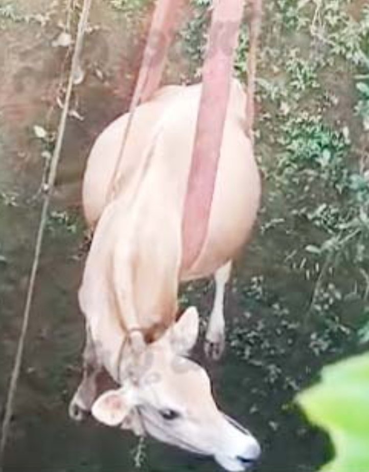 ಸ್ಥಳೀಯರಾದ ಪ್ರಕಾಶ್ ಗೌಡ, ಮಹಮ್ಮದ್ ಶಾಫಿ, ಕರಿಯ, ಬಾಲಚಂದ್ರನಾಯಕ್ , ಸೈಯದ್, ಶೇಖರ್ ರವರು ಕ್ರೈನ್ ಸಹಾಯದಿಂದ ಹಸುವನ್ನು ಮೇಲಕ್ಕೆತ್ತುವಲ್ಲಿ ಸಹಕರಿಸಿದ್ದಾರೆ.