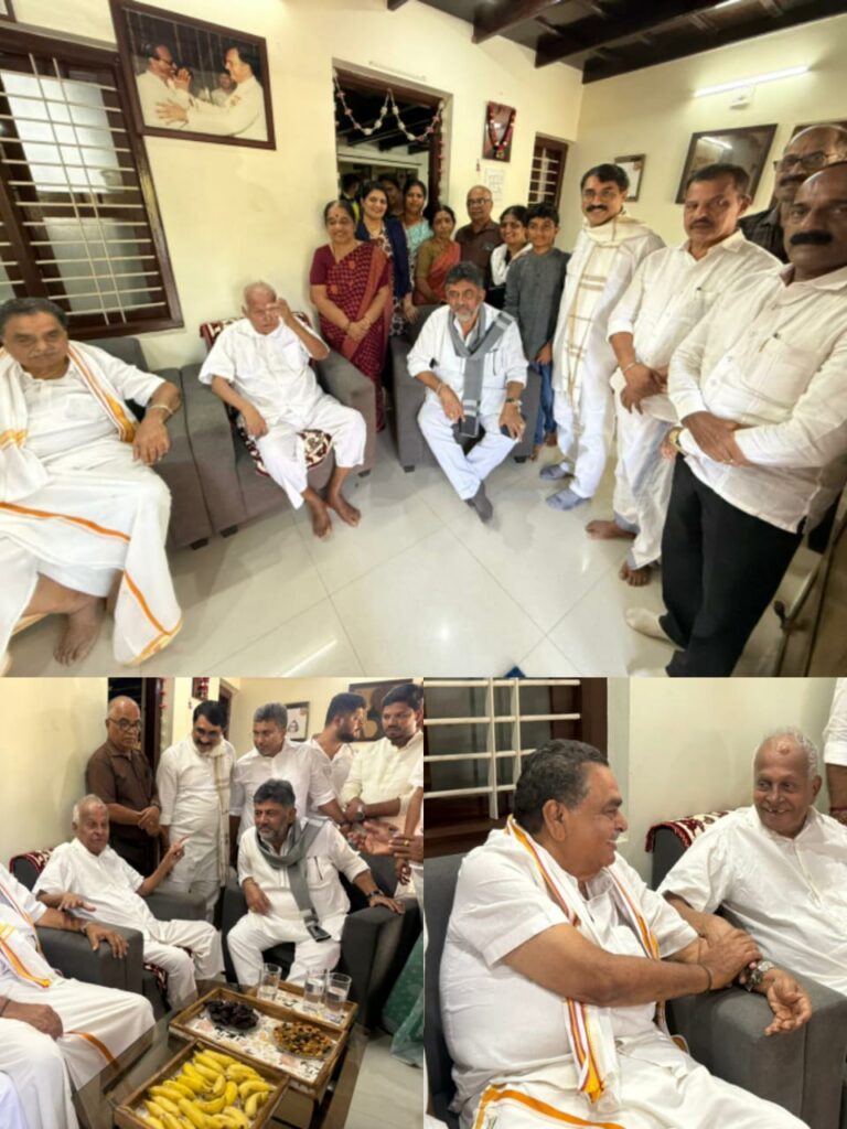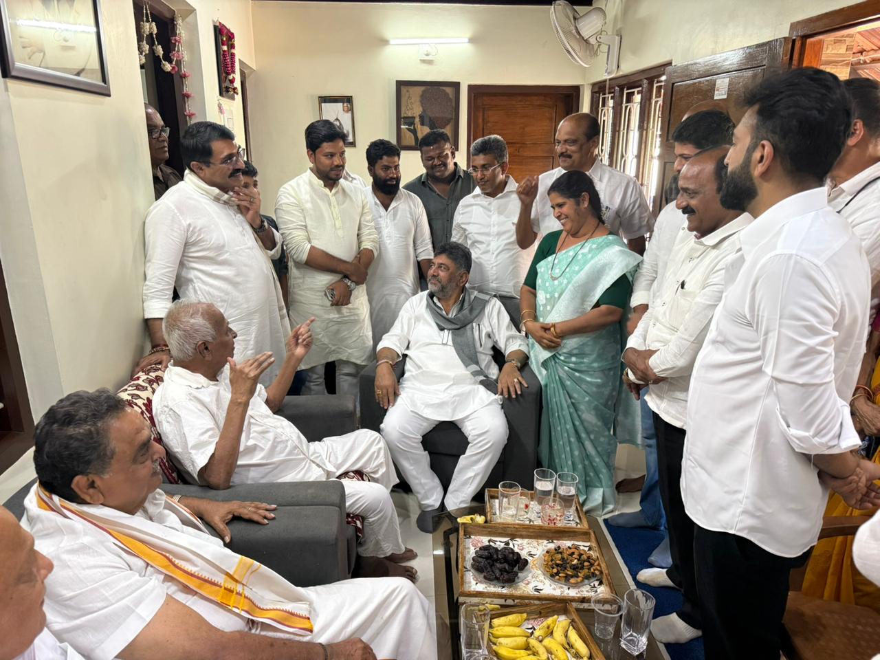 ಪೂಜಾರಿ ಅವರೊಂದಿಗೆ ಕೆಲಕಾಲ ಸೌಹಾರ್ದಯುತ ಮಾತುಕತೆ ನಡೆಸಿದ ಡಿ.ಕೆ. ಶಿವಕುಮಾರ್ ಅವರು ಅವರ ಆಶೀರ್ವಾದ ಪಡೆದು ಸಂತಸ ವ್ಯಕ್ತಪಡಿಸಿದರು.