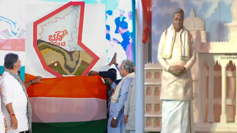 ಕಾರ್ಯಕ್ರಮವನ್ನು ಸಿರಿ ಧಾನ್ಯಗಳ ನಾಮಫಲಕದ ಮೂಲಕ ಸಿಎಂ ಸಿದ್ದರಾಮಯ್ಯ ಹಾಗೂ ಡಿಸಿಎಂ ಡಿ.ಕೆ ಶಿವಕುಮಾರ್ ಉದ್ಘಾಟನೆ ಮಾಡಿದ್ದಾರೆ. ಈ ವೇಳೆ ಭೂ ಗ್ಯಾರಂಟಿ ಪುಸ್ತಕ ಬಿಡುಗಡೆ ಮಾಡಲಾಯಿತು. ಬಳಿಕ ಅನೇಕ ಅಭಿವೃದ್ಧಿ ಕಾರ್ಯಕ್ರಮಗಳಿಗೆ ಚಾಲನೆ ನೀಡಲಾಗಿದೆ. ಉತ್ತಮ ಕೆಲಸ ಮಾಡಿದ ತಹಶೀಲ್ದಾರ್ ಗಳಿಗೆ ಸನ್ಮಾನ ಮಾಡಲಾಗಿದೆ. ಸಿಎಂ ಪುತ್ಥಳಿ ನೋಡಿ ಡಿಸಿಎಂ ಮಂದಹಾಸ ಬೀರಿದ್ದಾರೆ. ಇದೇ ವೇಳೆ ಧಾನಿ ದಾಸನೂರ್ಗೆ ಸಿಎಂ ಹಾಗೂ ಡಿಸಿಎಂ ಅಭಿನಂದಿಸಿದ್ದಾರೆ.