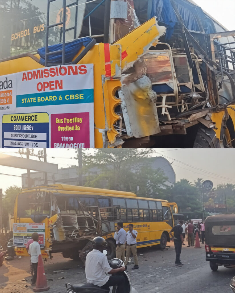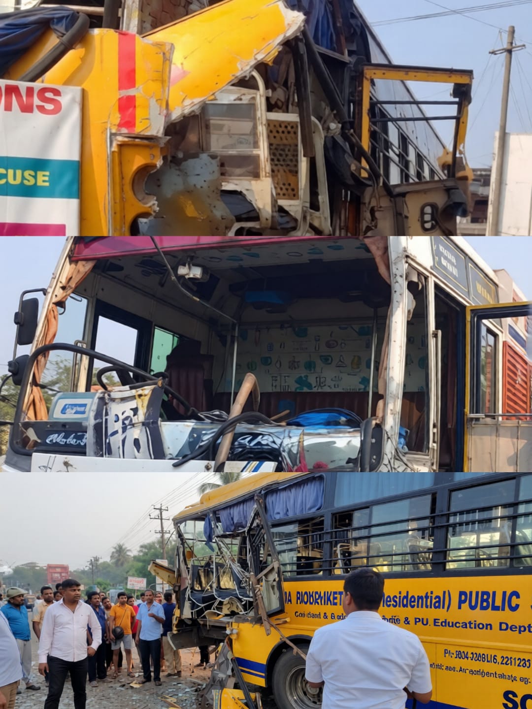 ಕೇರಳ ಕಡೆಗೆ ಸಂಚರಿಸುತ್ತಿದ್ದ ಲಾರಿ ಡಿಕ್ಕಿ ಹೊಡೆದು ಈ ಅಪಘಾತ ಸಂಭವಿಸಿದ್ದು, ಅದೃಷ್ಡವಶಾತ್ ವಿದ್ಯಾರ್ಥಿಗಳು ಪ್ರಾಣಾಪಾಯದಿಂದ ಪಾರಾಗಿದ್ದಾರೆ ಎಂದು ತಿಳಿದು ಬಂದಿದೆ.