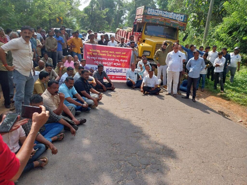 ವಿಟ್ಲ: ಆಟೋ ರಿಕ್ಷಾ, ಟೂರಿಸ್ಟ್ ಕಾರು, ಖಾಸಗಿ ಬಸ್, ಲಾರಿ ಮಾಲಕರ ಸಂಘದ ವತಿಯಿಂದ ಸಂಚಾರ ಅಯೋಗ್ಯವಾಗಿರುವ ವಿಟ್ಲ-ಉಕ್ಕುಡ -ಪಡಿಬಾಗಿಲು ಅಂತರ್ ರಾಜ್ಯ ಹೆದ್ದಾರಿಯ ರಸ್ತೆಯ ಅಭಿವೃದ್ಧಿಗೆ ಆಗ್ರಹಿಸಿ ಹೆದ್ದಾರಿ ತಡೆದು ಪ್ರತಿಭಟನೆ ನಡೆಸಲಾಯಿತು.