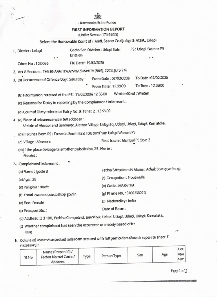ಜ್ಯೋತಿ ಎಂಬ ಮಹಿಳೆಯು ನೀಡಿದ ದೂರಿನ ಮೇರೆಗೆ ಉಡುಪಿ ಮಹಿಳಾ ಪೊಲೀಸ್ ಠಾಣೆಯಲ್ಲಿ ಫೆ. 19 ರಂದು ಪ್ರಕರಣ ದಾಖಲಾಗಿದೆ.