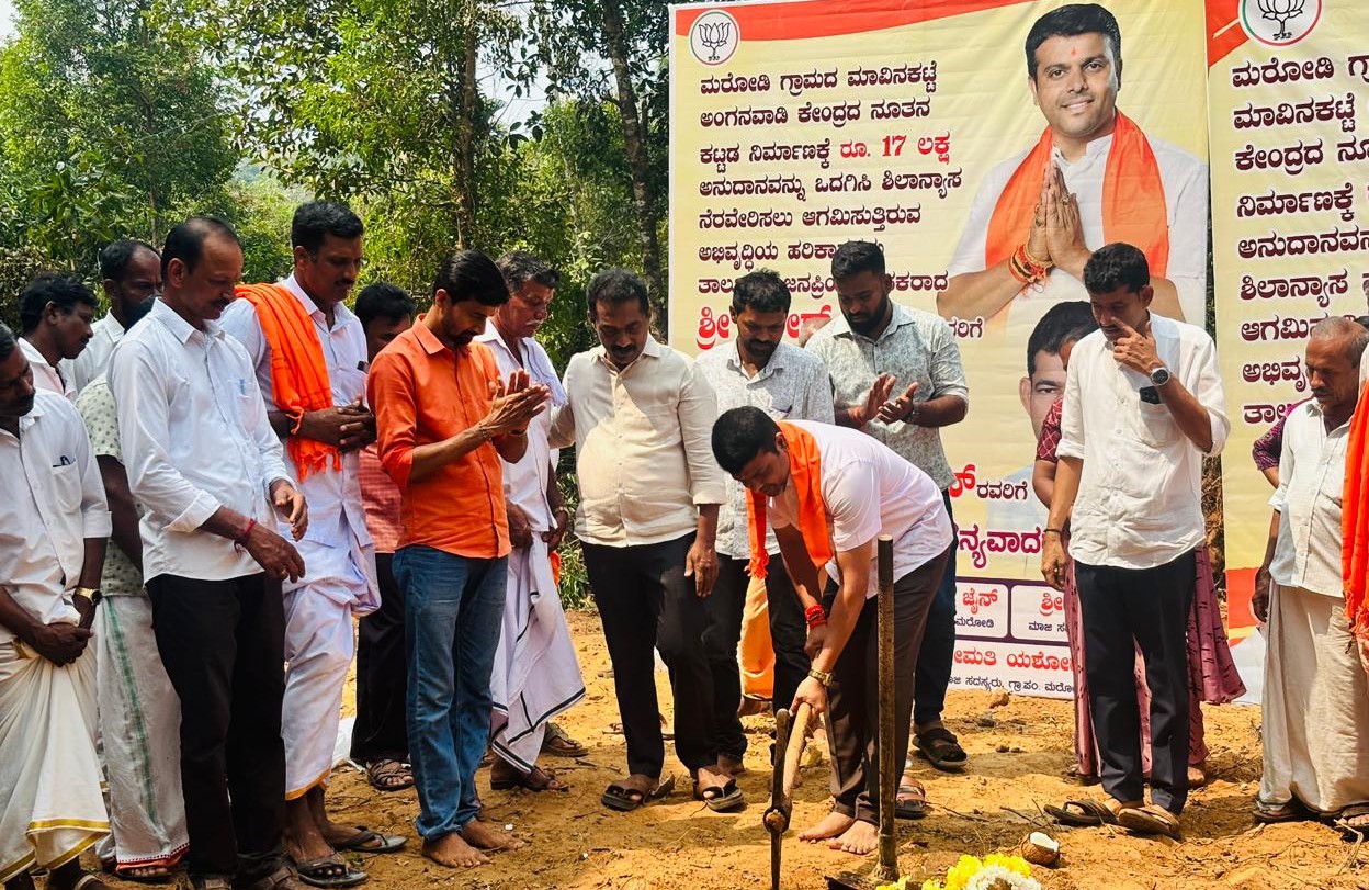 ಬೆಳ್ತಂಗಡಿ : ಶಾಸಕ ಹರೀಶ್ ಪೂಂಜ ಅವರು ಮರೋಡಿ ಗ್ರಾಮದ ಮಾವಿನಕಟ್ಟೆ ಎಂಬಲ್ಲಿ ರೂ. 17.00 ಲಕ್ಷ ವೆಚ್ಚದಲ್ಲಿ ನಿರ್ಮಾಣಗೊಳ್ಳಲಿರುವ ಅಂಗನವಾಡಿ ಕೇಂದ್ರದ ನೂತನ ಕಟ್ಟಡ ಕಾಮಗಾರಿಗೆ ಮಾ. 07 ರಂದು ಶಿಲಾನ್ಯಾಸ ನೆರವೇರಿಸಿದರು.