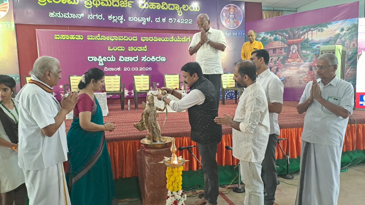 ಅವರು ಕಲ್ಲಡ್ಕ ಶ್ರೀರಾಮ ಪ್ರಥಮ ದರ್ಜೆ ಮಹಾವಿದ್ಯಾಲಯದಲ್ಲಿ ಮಾ. 20 ರಂದು ಏರ್ಪಡಿಸಲಾದ ರಾಷ್ಟ್ರೀಯ ವಿಚಾರ ಸಂಕಿರಣವನ್ನು ಶ್ರೀರಾಮನ ಮೂರ್ತಿಗೆ ಹಾಲಭಿಷೇಕ ಮಾಡಿ ಉದ್ಘಾಟಿಸಿ ಮಾತನಾಡಿದರು.