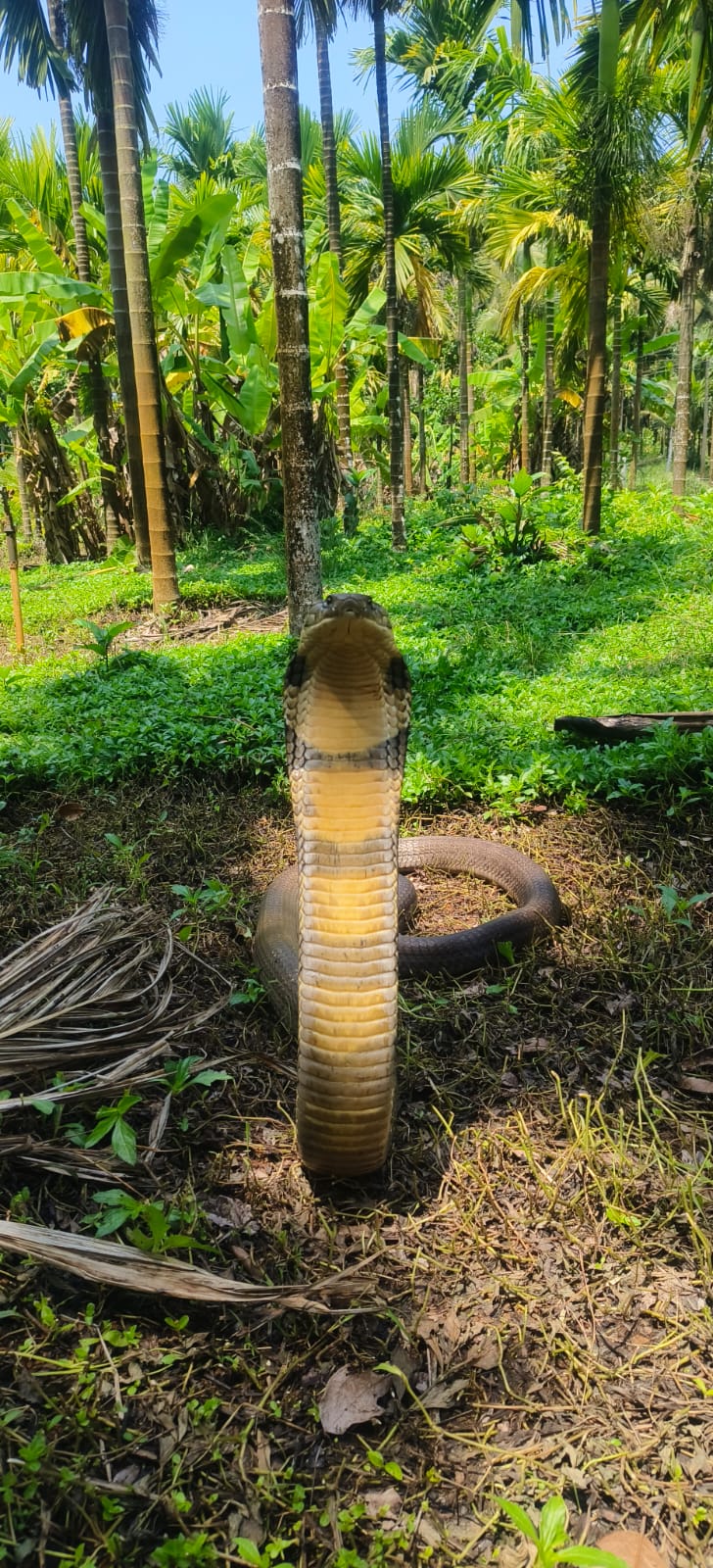 ಬೆಳ್ತಂಗಡಿ: ಅಳದಂಗಡಿ ವೀರೇಂದ್ರ ಜೈನ್ ಎಂಬವರ ತೋಟದಲ್ಲಿ ಸುಮಾರು 13 ಅಡಿ ಉದ್ದದ ಬೃಹತ್ ಗಾತ್ರದ ಕಾಳಿಂಗ ಸರ್ಪ ಪತ್ತೆಯಾದ ಘಟನೆ ನಡೆದಿದೆ.