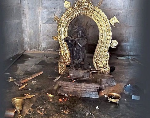 ಅಲ್ಲಿ ಪೂಜಿಸಲ್ಪಡುತ್ತಿದ್ದ ವಿಗ್ರಹವನ್ನು ಹೊರತೆಗೆದು ನೆಲಕ್ಕೆ ಎಸೆದು ಹಾನಿಗೊಳಿಸಿದ್ದು, ಗರ್ಭಗುಡಿಯಲ್ಲಿದ್ದ ಪೂಜಾ ಪರಿಕರಗಳನ್ನು ಎಲ್ಲೆಂದರಲ್ಲಿ ಎಸೆದು ಅಸ್ತವ್ಯಸ್ತಗೊಳಿಸಿದ್ದಾನೆ.