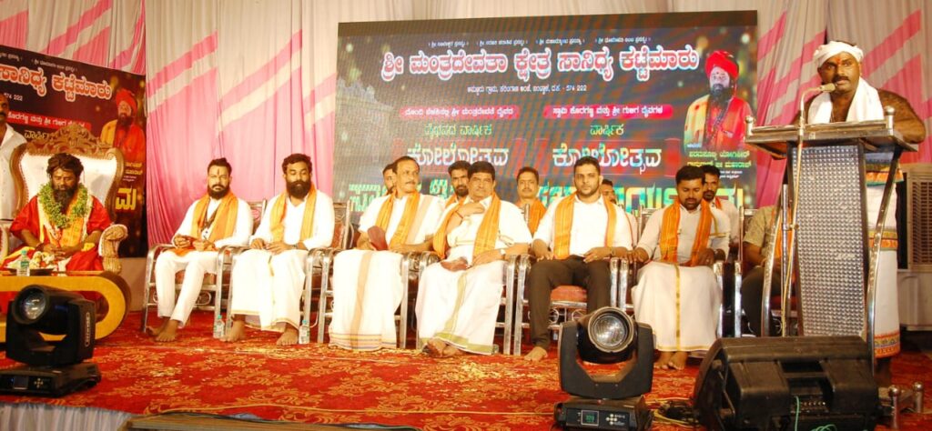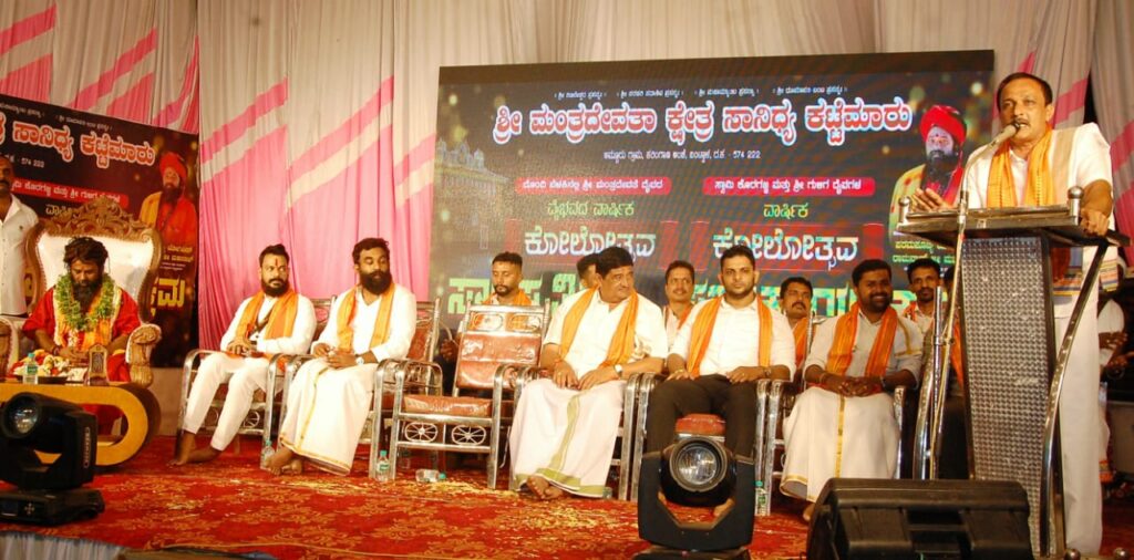 ಅವರು ಬಂಟ್ವಾಳ ತಾಲೂಕಿನ ಶ್ರೀ ಮಂತ್ರ ದೇವತಾ ಕ್ಷೇತ್ರ ಸಾನಿದ್ಯ ಕಟ್ಟೆಮಾರು ಶ್ರೀ ಮಂತ್ರ ದೇವತೆ, ಸ್ವಾಮಿ ಕೊರಗಜ್ಜ ಮತ್ತು ಶ್ರೀ ಗುಳಿಗ ದೈವಗಳ ವೈಭವದ ವಾರ್ಷಿಕ ಕೋಲೋತ್ಸವ ಕಾರ್ಯಕ್ರಮದ ಧಾರ್ಮಿಕ ಸಭಾ ಕಾರ್ಯಕ್ರಮದಲ್ಲಿ ಮಾತನಾಡಿದರು.