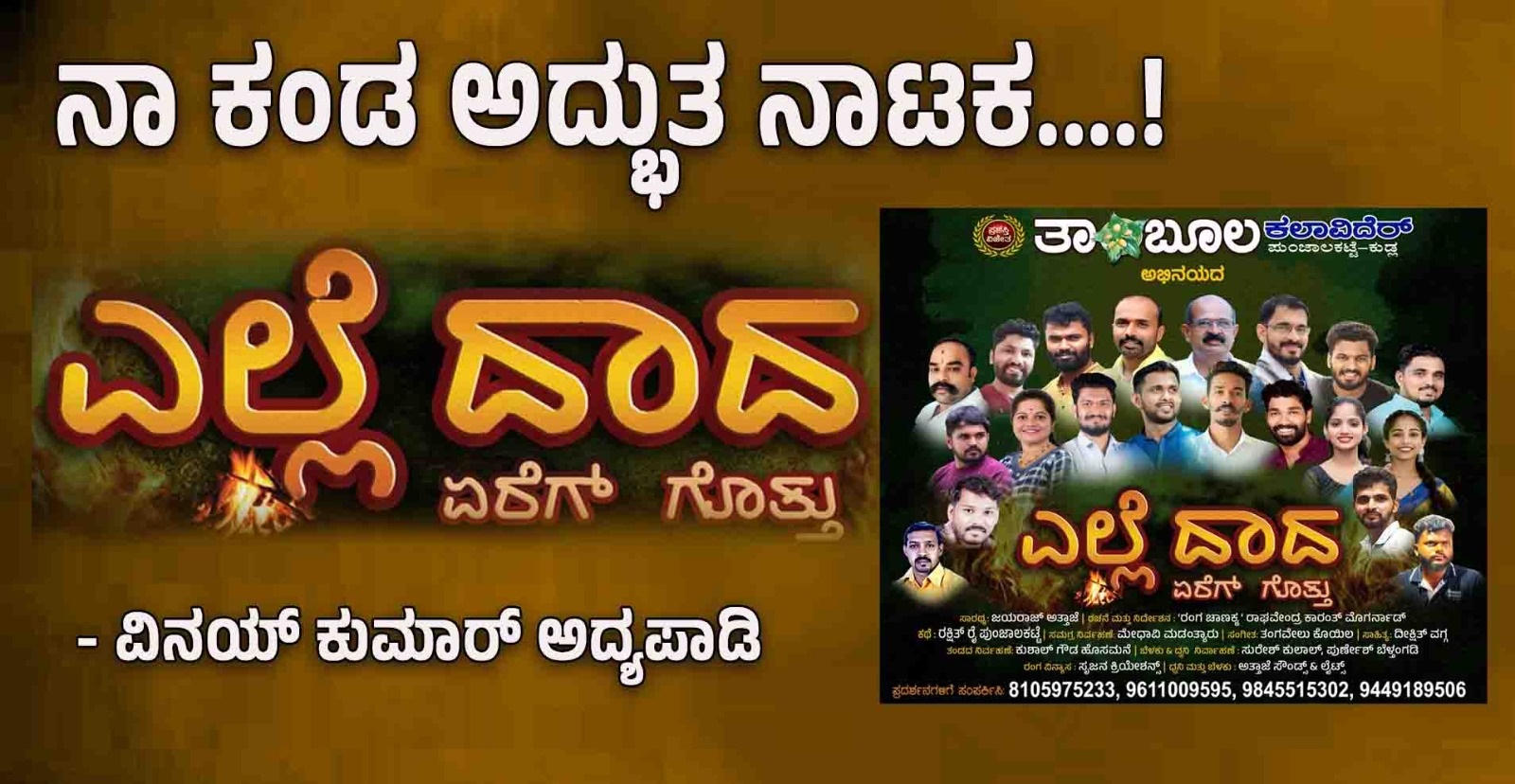 ಹೌದು, ರಕ್ಷಿತ್ ರೈ ಪೂಂಜಾಲಕಟ್ಟೆ ಯವರ ಉತ್ತಮ ಕಥೆ ಯೊಂದಿಗೆ, ರಂಗ ಚಾಣಕ್ಯ ರಾಘವೇಂದ್ರಕಾರಂತ್ ಮೊಗರ್ನಾಡ್ ರಚನೆ ಹಾಗೂ ಅತ್ಯುತ್ತಮ ನಿರ್ದೇಶನ ದಲ್ಲಿ ಎಲ್ಲೆ ದಾದ ಏರೆಗ್ ಗೊತ್ತು ನಾಟಕ ಪ್ರತಿಯೊಬ್ಬ ಕಲಾವಿದನ ಮನಸ್ಸನ್ನು ಗೆದ್ದಿದೆ.