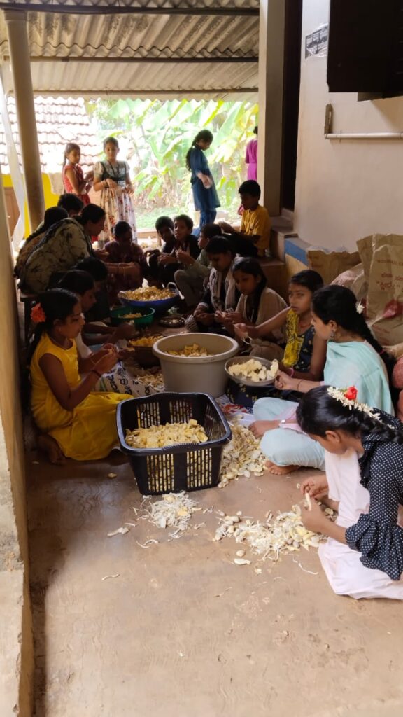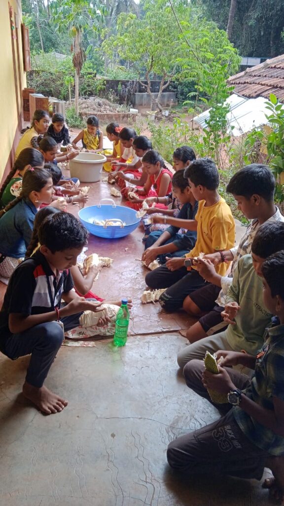 ಶಾಲಾ ಹಿರಿಯ ವಿದ್ಯಾರ್ಥಿ ಜಯರಾಮ್ ನಾವಡರವರ ನೇತೃತ್ವದಲ್ಲಿ ದೂರದ ಪುತ್ತೂರಿನಿಂದ ಹಲಸಿನಕಾಯಿ ತಂದು ಶಾಲೆಯಲ್ಲಿ ಮಕ್ಕಳಿಗೆ ಹಪ್ಪಳ ಮಾಡುವ ರೀತಿಯನ್ನು ಪ್ರಾತ್ಯಕ್ಷಿಕೆಯ ಮೂಲಕ ತೋರಿಸಿದರು. ಮಕ್ಕಳ ಜೊತೆ ಶಾಲಾ ಶಿಕ್ಷಕರು, ಅಡುಗೆ ಸಿಬ್ಬಂದಿಗಳು,ಮಕ್ಕಳ ಪೋಷಕರು, ಹಿರಿಯ ವಿದ್ಯಾರ್ಥಿಗಳು ಜೊತೆ ಸೇರಿಕೊಂಡರು.