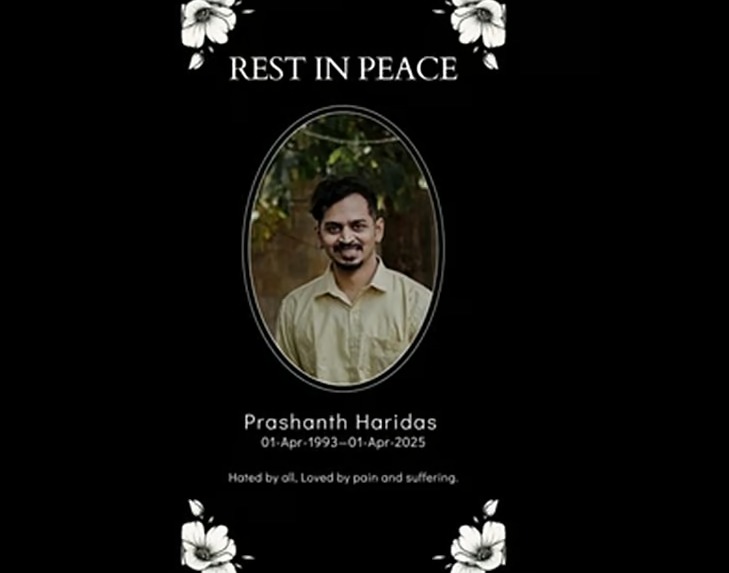 ಬೆಂಗಳೂರು: ಬದುಕಿದ್ದಾಗಲೇ ಯುವಕನೋರ್ವ ಸಾಮಾಜಿಕ ಜಾಲತಾಣದಲ್ಲಿ ತನಗೆ ತಾನೇ “ಶ್ರದ್ಧಾಂಜಲಿ” ಎಂದು ಪೋಸ್ಟ್ ಮಾಡಿದ್ದು, ಈ ವಿಚಿತ್ರ ಫೋಸ್ಟ್ ಇದೀಗ ಭಾರೀ ವೈರಲ್ ಆಗುತ್ತಿದೆ.