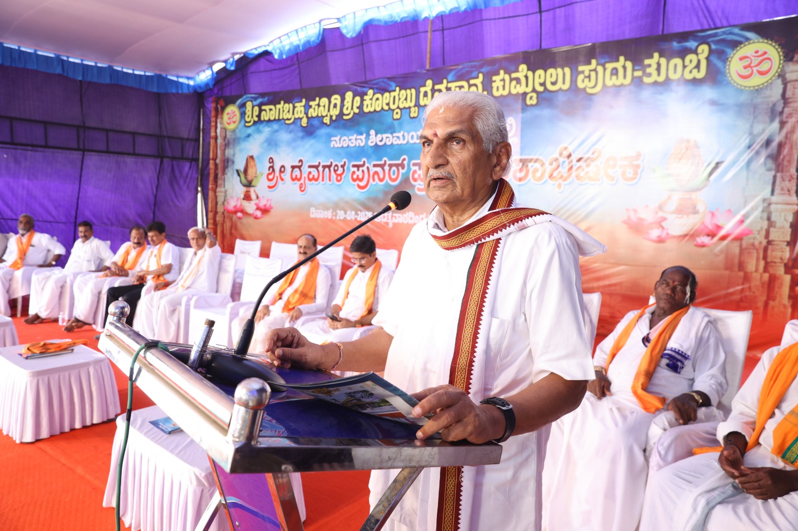 ಅವರು ಕುಮ್ಡೇಲು ಶ್ರೀ ನಾಗಬ್ರಹ್ಮ ಸನ್ನಿಧಿ ಶ್ರೀ ಕೊರ್ದಬ್ಬು ದೈವಸ್ಥಾನದ ಪುನಃ ಪ್ರತಿಷ್ಠಾ ಕಲಶಾಭಿಷೇಕ ಹಾಗೂ ೭೫ನೇ ವರ್ಷದ ನೇಮದ ಧರ್ಮ ಸಭೆಯಲ್ಲಿ ಮಾತನಾಡಿದರು.
