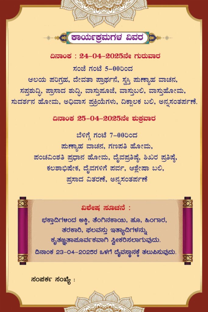 ದೈವಗಳ ಈ ಕಾರ್ಯಕ್ರಮವು ವಿದ್ವಾನ್ ಪ್ರಕಾಶ್ ಆಚಾರ್ಯ ಪಿ. ಇವರ ನೇತೃತ್ವದಲ್ಲಿ ನೆರವೇರಲಿದೆ. ಏಪ್ರಿಲ್.25 ರಂದು ರಾತ್ರಿ 8 ಗಂಟೆಗೆ ದೈವಗಳಿಗೆ ನೇಮೋತ್ಸವ ಸೇವೆ ಇದೆ.