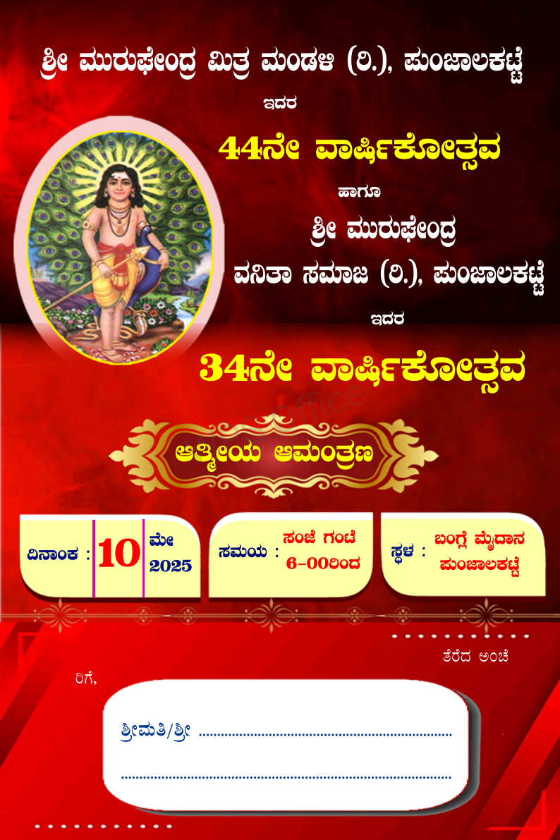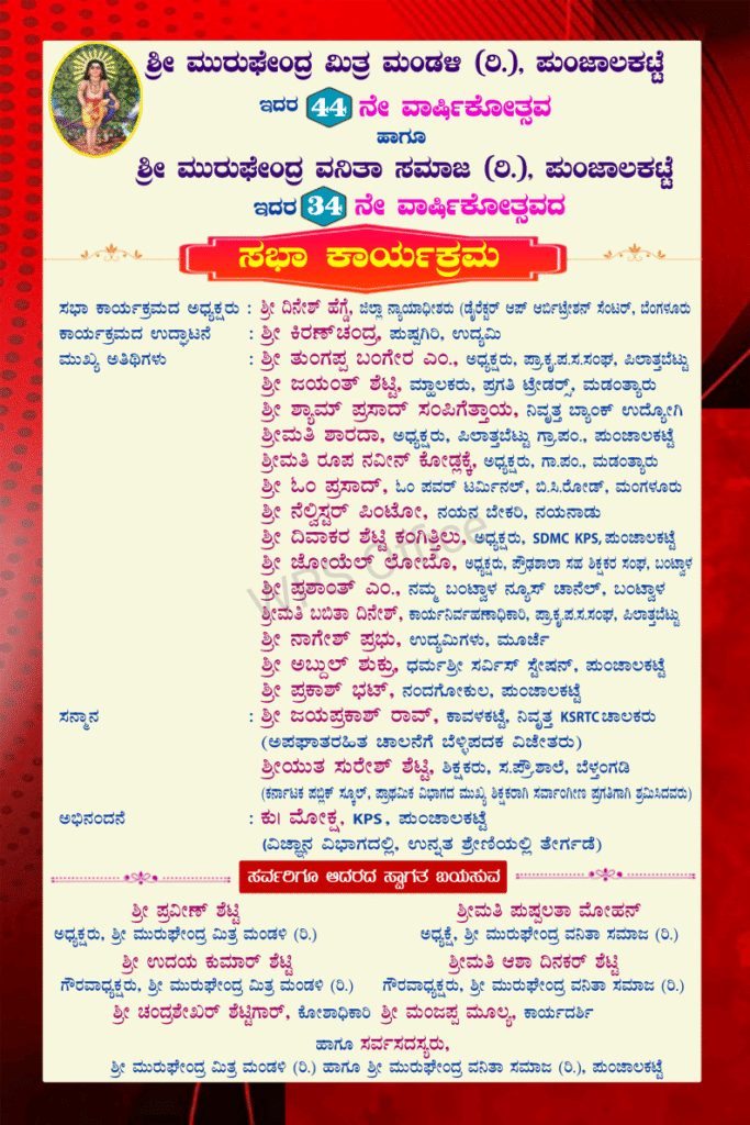 ಬಂಟ್ವಾಳ : ಪುಂಜಾಲಕಟ್ಟೆ ಶ್ರೀ ಮುರುಘೇಂದ್ರ ಮಿತ್ರ ಮಂಡಳಿ ಇದರ 44 ನೇ ಹಾಗೂ ಶ್ರೀ ಮುರುಘೇಂದ್ರ ವನಿತಾ ಸಮಾಜ ಇದರ 34ನೇ ವಾರ್ಷಿಕೋತ್ಸವವು ಮೇ 10 ರಂದು ಪುಂಜಾಲಕಟ್ಟೆ ಬಂಗ್ಲೆ ಮೈದಾನದಲ್ಲಿ ನಡೆಯಲಿದೆ.