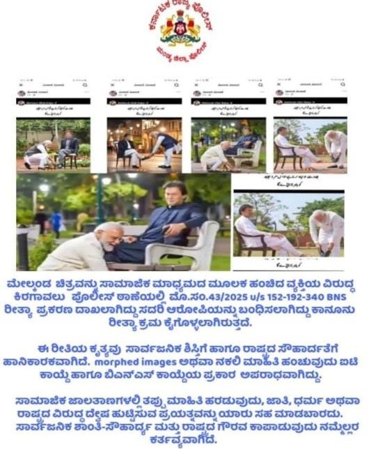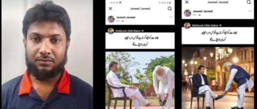 ವಿಚಾರ ಹೀಗಿರುವಾಗಲೇ ಮಂಡ್ಯ ತಾಲೂಕಿನ ಕಿರುಗಾವಲು ಎಂಬಲ್ಲಿ ಜಾವಿದ್ ಪಾಷಾ ಅನ್ನುವ ಪಾಕ್ ಪ್ರೇಮಿಯೊಬ್ಬ ಪ್ರಧಾನಿ ನರೇಂದ್ರ ಮೋದಿಯವರು ಪಾಕ್ ನ ಮಾಜಿ ಪ್ರಧಾನಿ ಇಮ್ರಾನ್ ಖಾನ್ ಅವರ ಬೂಟ್ ಒರೆಸುತ್ತಿರುವ ರೀತಿ ವಿವಾದಾತ್ಮಕವಾಗಿ ಚಿತ್ರಕರಿಸಿರುವ ಪಾಕಿಸ್ತಾನ ಮೂಲದ ಫೋಟೋವನ್ನು ತನ್ನ ಖಾತೆಯಲ್ಲಿ ಶೇರ್ ಮಾಡಿಕೊಂಡಿದ್ದಾನೆ.